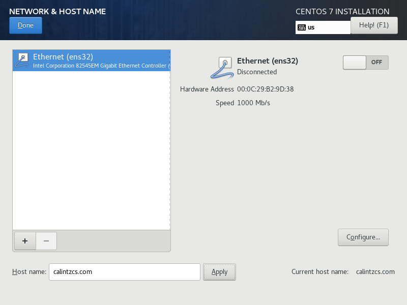 하단의 Host name 항목에 사용할 호스트 네임을 입력하고 Apply 버튼을 클릭하면 Currnet host name에 변경된 호스트 네임이 표기된다.