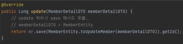 JPA는 save를 할 때 pk값도 같이 보내면 pk 값을 인지하고 새로 만드는 것이 아니라 해당 데이터를 찾아서 수정을 해준다