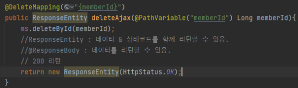 ResponseEntity : 데이터 & 상태코드를 함께 리턴할 수 있음