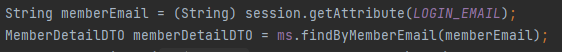 update 페이지를 띄울 때 세션에 있는 이메일으로 해당 아이디의 값을 가져온다