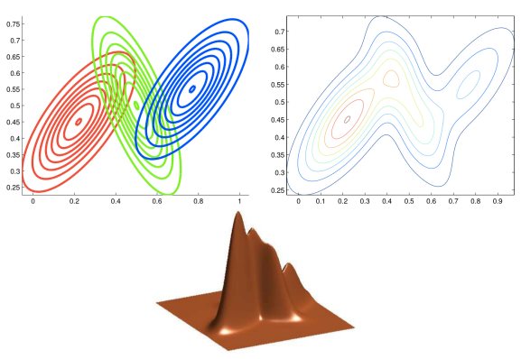 이렇게 E-step에서 계산한 posterior probabilities를 가지고 각 cluster의 중심, 분산, 비율을 update하며 likelihood를 개선한다.