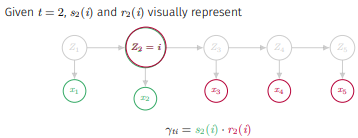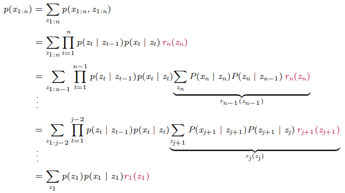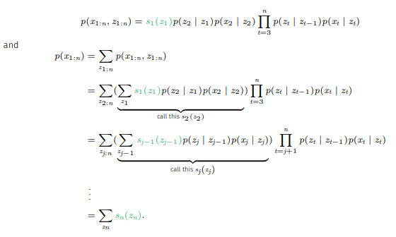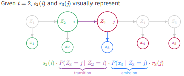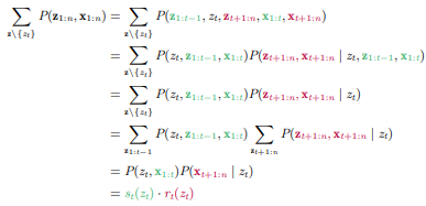 그래서 forward-backward algorithm은 recursive fomulas를 통해 이 값을 효율적으로 계산할 것이다.(by variable elimination)