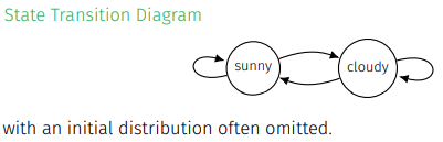 여기서 T는 m*m matrix로 transition matrix를 의미. HMM의 예시를 들어보면