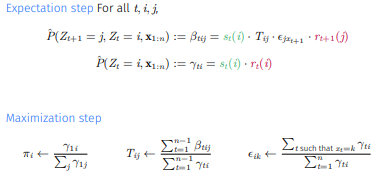 - 파라미터를 학습하기 위한 Baum-Welch algorithm은 Expectation과 Maximization steps으로 이루어진 E-M method이다.