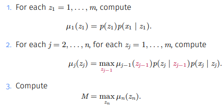 Decoding: given x에대해 어떤 hidden variables들의 조합이 나타날 확률이 가장 높은가? = 가장 적당한 z의 sequence는 무엇인가?