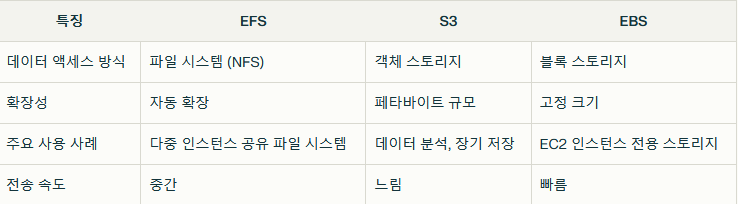 - 내부적으로 NFS 프로토콜을 사용하며, EFS에 대한 액세스를 제어하려면 보안 그룹을 설정해야 한다.