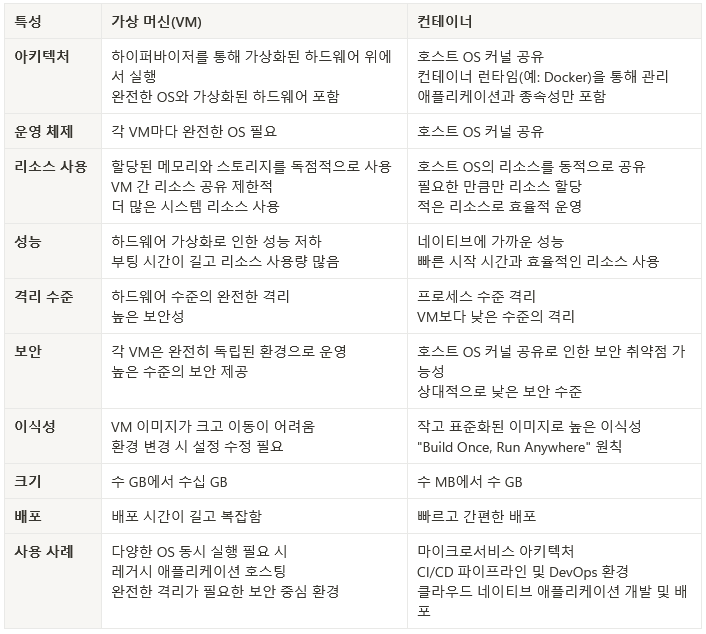 - 각 가상 머신은 독립적인 운영 체제를 가지고 있어 자원 격리가 가능