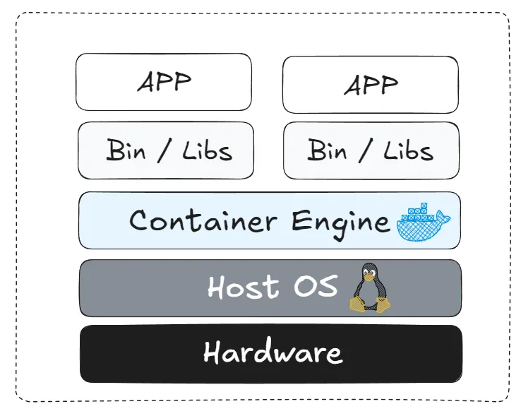- 호스트 운영 체제의 커널을 공유하여 가상 머신보다 가볍고 빠른 실행 환경 제공