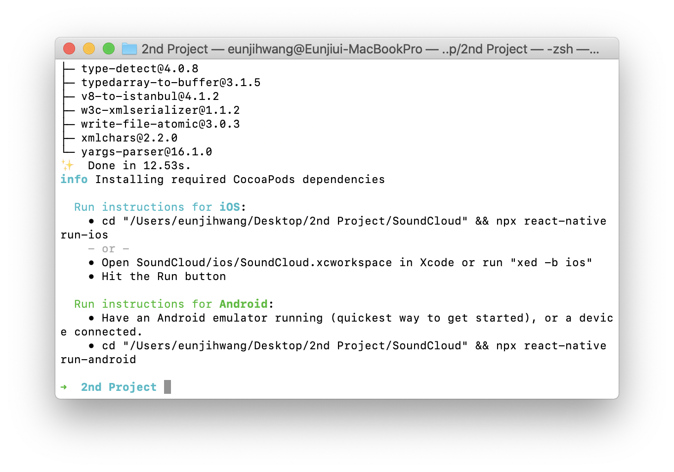 ๋ฆฌ์กํธ ๋ค์ดํฐ๋ธ๋ฅผ ๊น๋ ค๋ฉด Xcode, npm, yarn, watchman, homebrew, nodejs ๋ฑ๋ฑ ์๊ฐ๋ณด๋ค ๋ง์ ๊ฒ๋ค์ ๊น์์ผ ํ๋ค. ๋คํํ๋ ๋๋ ์ ๋ฒ์ ๋ค ์ค์น๋ฅผ ํ๊ณ , ์ด๋ฒ์๋ ํ๋ก์ ํธ ์์ฑ๋ง ํ๋ฉด ๋๋ค!!