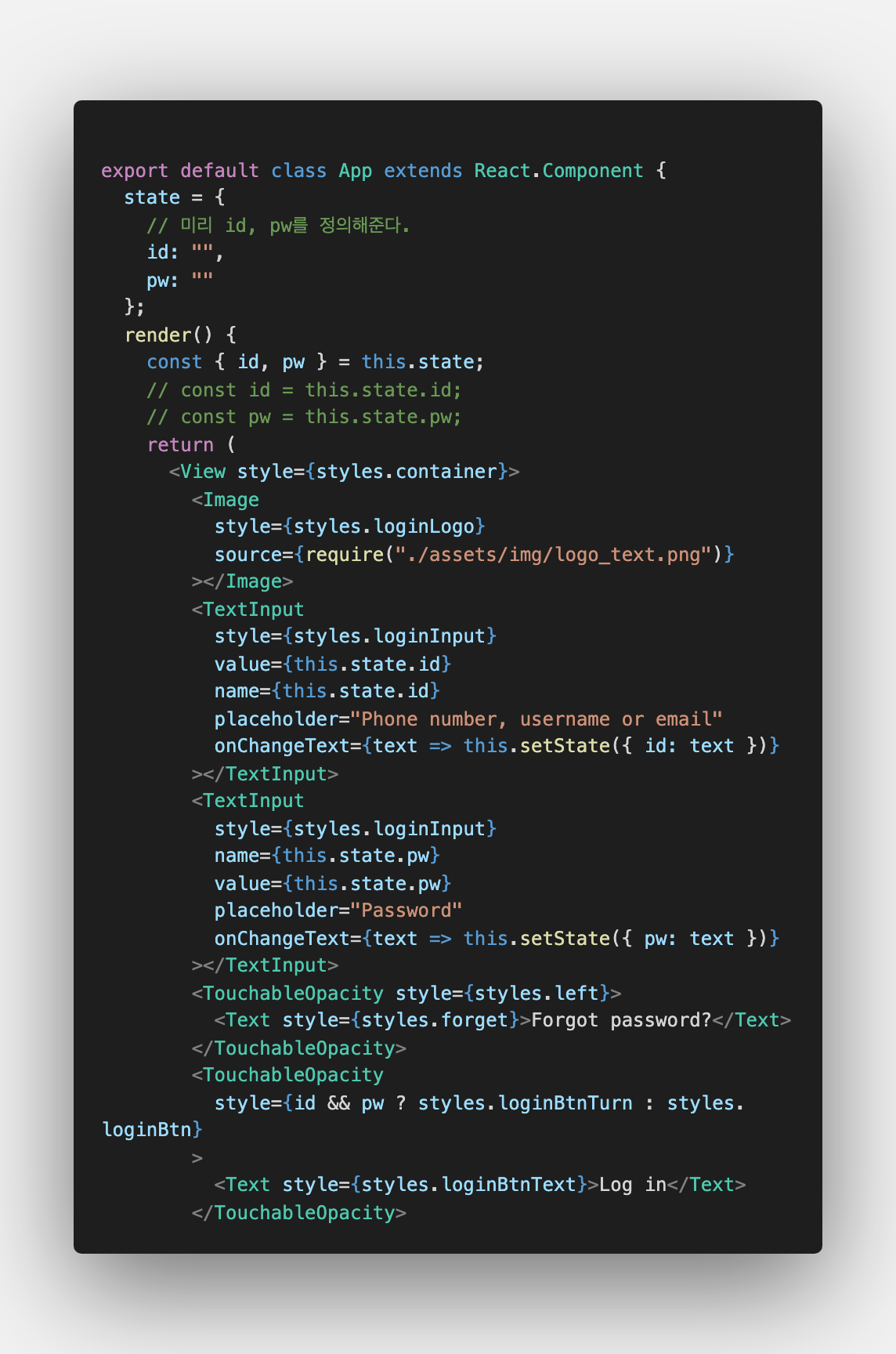 ๋๋ถ๋ถ์ ๊ฐ๋ฐ์๋ค์ด state์์ ์๋ ๊ฐ์ ๊ฐ์ ธ์์ ์ฌ์ฉํ ๋ ๊ทธ ๋ณ์๋ฅผ state ์ ํค์ ๋๊ฐ์ด ์ฐ๊ธฐ ๋๋ฌธ์ ๊ทธ๋ฐ ๊ณผ์ ์ ๊ฐ๊ฒฐํ๊ฒ ํ ๊ฒ์ด๋ผ๊ณ ํ๋ค. ๋ ์์ธํ ๋ถ๋ถ์ ๋ด์ผ ๊ณต๋ถํด๋ณด์์ผ๊ฒ ์ง๋ง ์๋ฐ์คํฌ๋ฆฝํธ, ๋ฆฌ์กํธ์์ ์ค์ํ ๋ถ๋ถ์ธ ๊ฒ ๊ฐ์์ ๋ฐ๋ก ํฌ์คํ