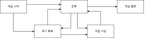 - 기본 상태 : 맨손 공격 (데미지, 사거리 최소)