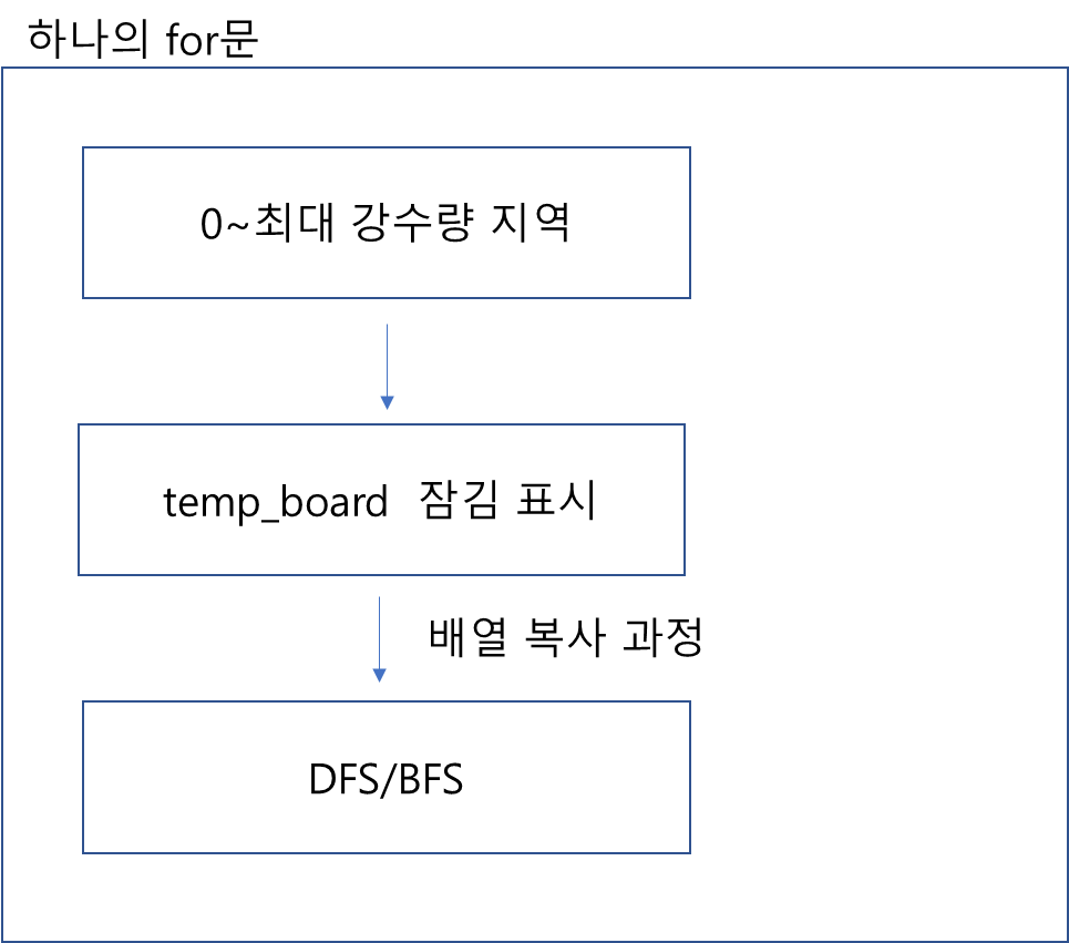 for (int i = 0; i <= max_height; i++) { int temp[101][101] = { 0, }; memcpy(temp, board, sizeof(board)); for (int j = 0; j < n; j++) { for (int k = 0; k < n; k++) { if (temp[j][k] <= i) { temp[j][k] = 0; } } } for... continue..
