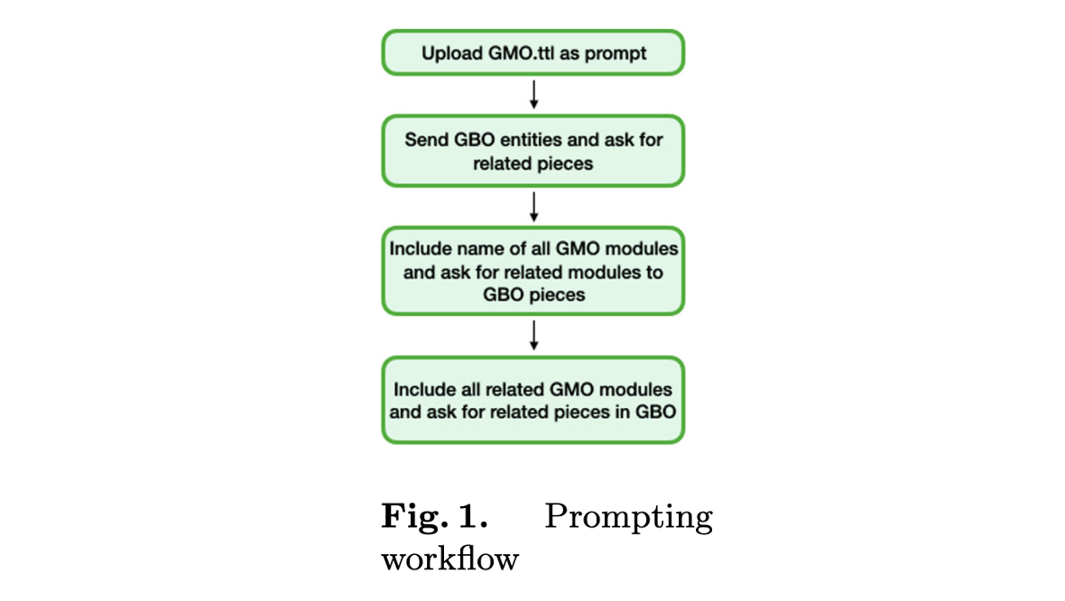 실험에 사용 모델은 GPT-4이다. 초기에 단순히 GBO.ttl 파일을 업로드 하고 추출한 관계를 GMO에서 관련 관계 탐색을 요청했는데, 이 결과는 충분하지 않았다고 한다. 따라서 모듈 정보를 포함한 프롬프트를 사용했고, 성능이 크게 향상되었다. 즉, zero-shot일 때는 필요한 요소의 10-20%만 인식할 수 있었지만, 모듈 정보를 제공했을 때는 약 95%가 성공적으로 식별되었다고 한다.