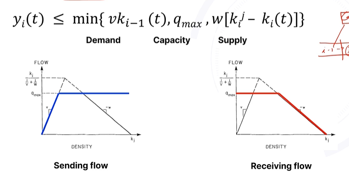 - qi^max(t): t에서 t+1 시점으로 진행될 때 i번째 셀에서 i+1번째 셀로 이동할 수 있는 최대 차량 수