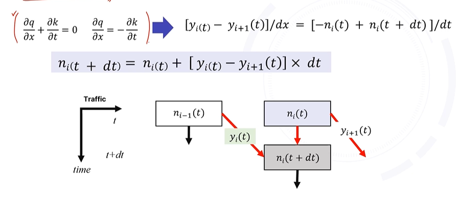- Cell i의 교통상태는 n_i(t) + y_i(t) - y_i-1(t) 이다.