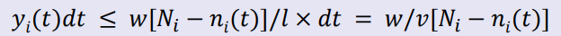 즉 자유속도[최대밀도(jam density) - t에서의 밀도(ni(t))] 보다 t에서의 inter-flow 교통류율이 클 수 없다는 의미이다.