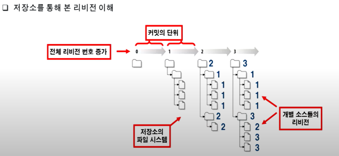 파일별로 번호가 매겨지는게 아니라 변경이 발생할때 마다 전체 리비젼 번호가 계속 바뀜