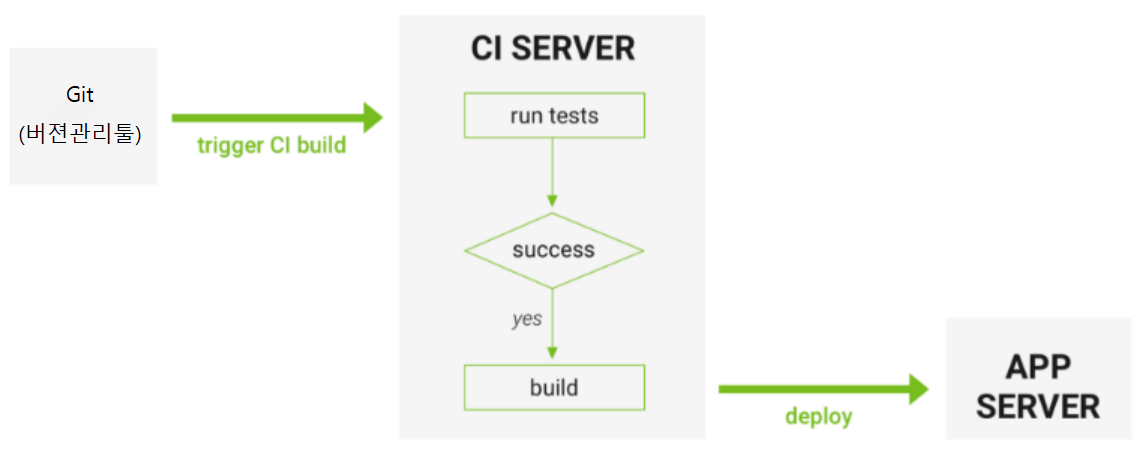 여기서 Build->Test->Deploy 이 과정을 자동으로 해주는 프로그램은 CI서버라고 한다.