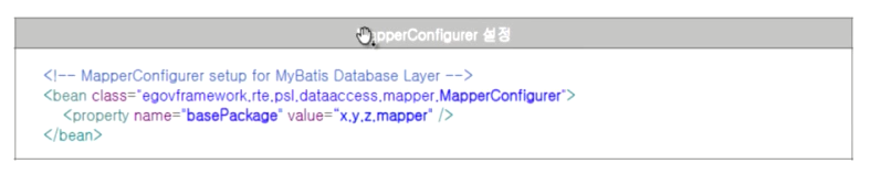 스프링 연동설정으로 스프링과 iBatis 연동을 위한 설정으로 예전에는 스프링에서 제공하는 iBatis 연동설정인 org.SpringFramwork으로 시작하는 sqlMapClientFactoryBean으로 지정했다면 스프링4로 올라가면서 eGovFramwork으로 시작하는 sqlMapClientFactoryBean으로 지정해야 한다.