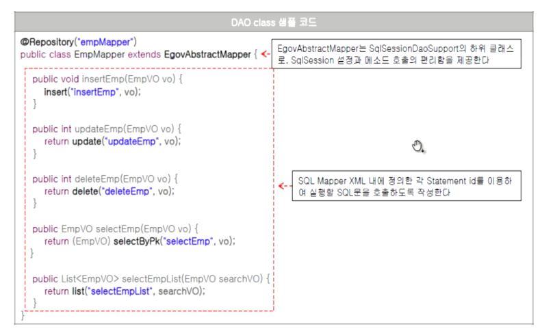 EgovAbstractMapper 클래스를 상속받아 DAO클래스를 작성