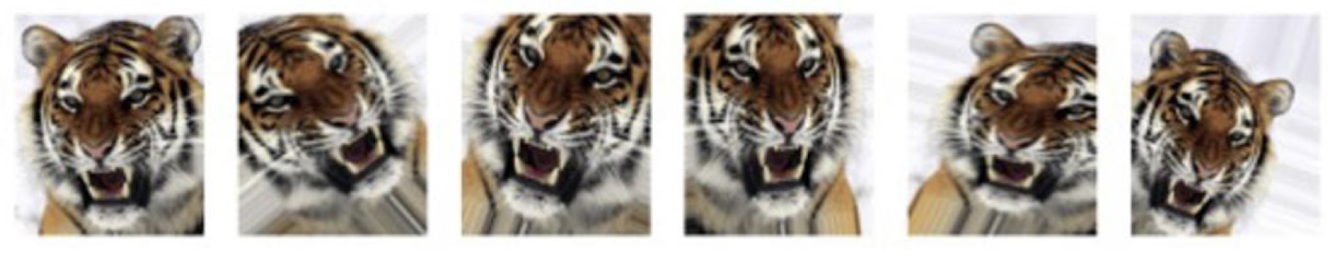 ์ฌ๋์ด ๋ณด๊ธฐ์ ๊ฐ์ ์ด๋ฏธ์ง๋ก ์ธ์๋ ์ ๋๋ก ๋ฏธ์ธํ ๋ณํ๋ง ์ฃผ๋ฉฐ, ๋ํ์ ์ธ ์๋ก๋ ํ๋(zoom), ์ํ/์์ง ์ด๋, ๊ธฐ์ธ์(shear), ์์ ํ์ , ์ข์ฐ ๋ฐ์ (horizontal flip) ๋ฑ์ด ์๋ค.