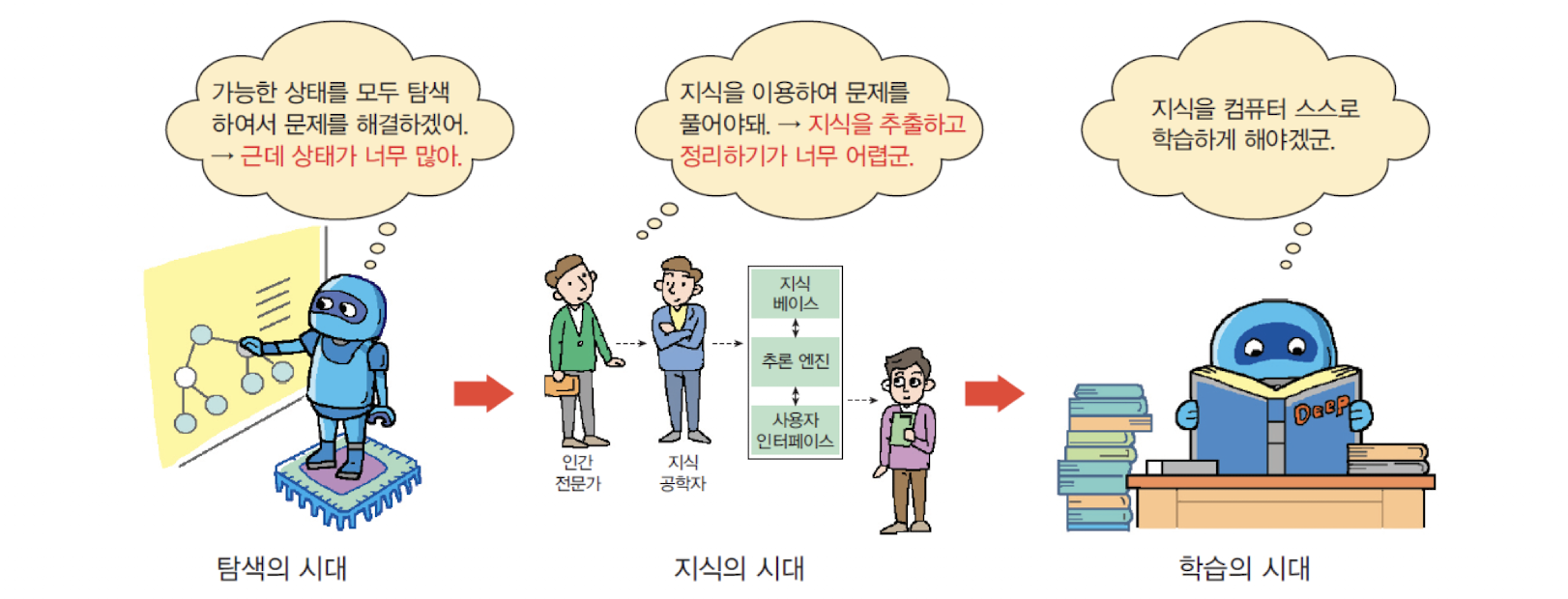 Artificial Intelligence๋ "์ง๋ฅ์ ์ธ ๊ธฐ๊ณ๋ฅผ ๋ง๋๋ ํ๋ฌธ ๋ถ์ผ"๋ก, ์ฌ๋์ฒ๋ผ ํ์ตํ๊ณ ๋ฌธ์ ๋ฅผ ํด๊ฒฐํ๋ ์ปดํจํฐ ์์คํ ์ ๋ชฉํ๋ก ํ๋ค.