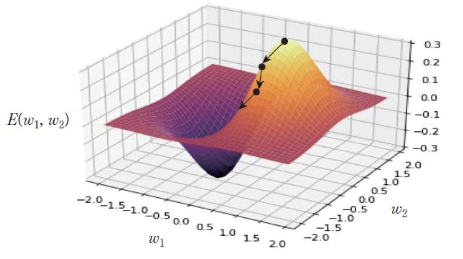 ๊ฒฝ์ฌํ๊ฐ๋ฒ์ ์ด์ฉํด ๊ฐ์ค์น๋ฅผ ์ค์ฐจ๋ฅผ ์ค์ด๋ ๋ฐฉํฅ์ผ๋ก ์
