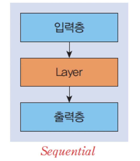 ๋ชจ๋ธ(model)์ด๋ฉฐ ๋ ์ด์ด๋ฅผ ๊ตฌ์ฑํ๋ ๋ฐฉ๋ฒ์ ๋ํ๋ธ๋ค.Sequential ์ ํ ์คํ ๋ชจ๋ธ์ด๋ค. Sequential ๋ชจ๋ธ์ ๋ ์ด์ด๋ฅผ ์ ํ์ผ๋ก ์์ ์ ์๋ ์ ๊ฒฝ๋ง ๋ชจ๋ธ์ด๋ค.