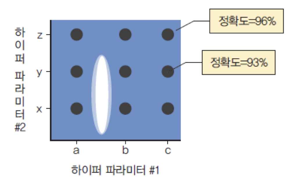 ๊ฐ ํ์ดํผํ๋ผ๋ฏธํฐ์ ๋ํด ์ฌ๋ฌ ๊ฐ์ ํ๋ณด ๊ฐ์ ์ ํ๊ณ , ๋ชจ๋ ์กฐํฉ์ ์คํํ์ฌ ๊ฐ์ฅ ์ฑ๋ฅ์ด ์ข์ ์กฐํฉ์ ์ฐพ๋๋ค.