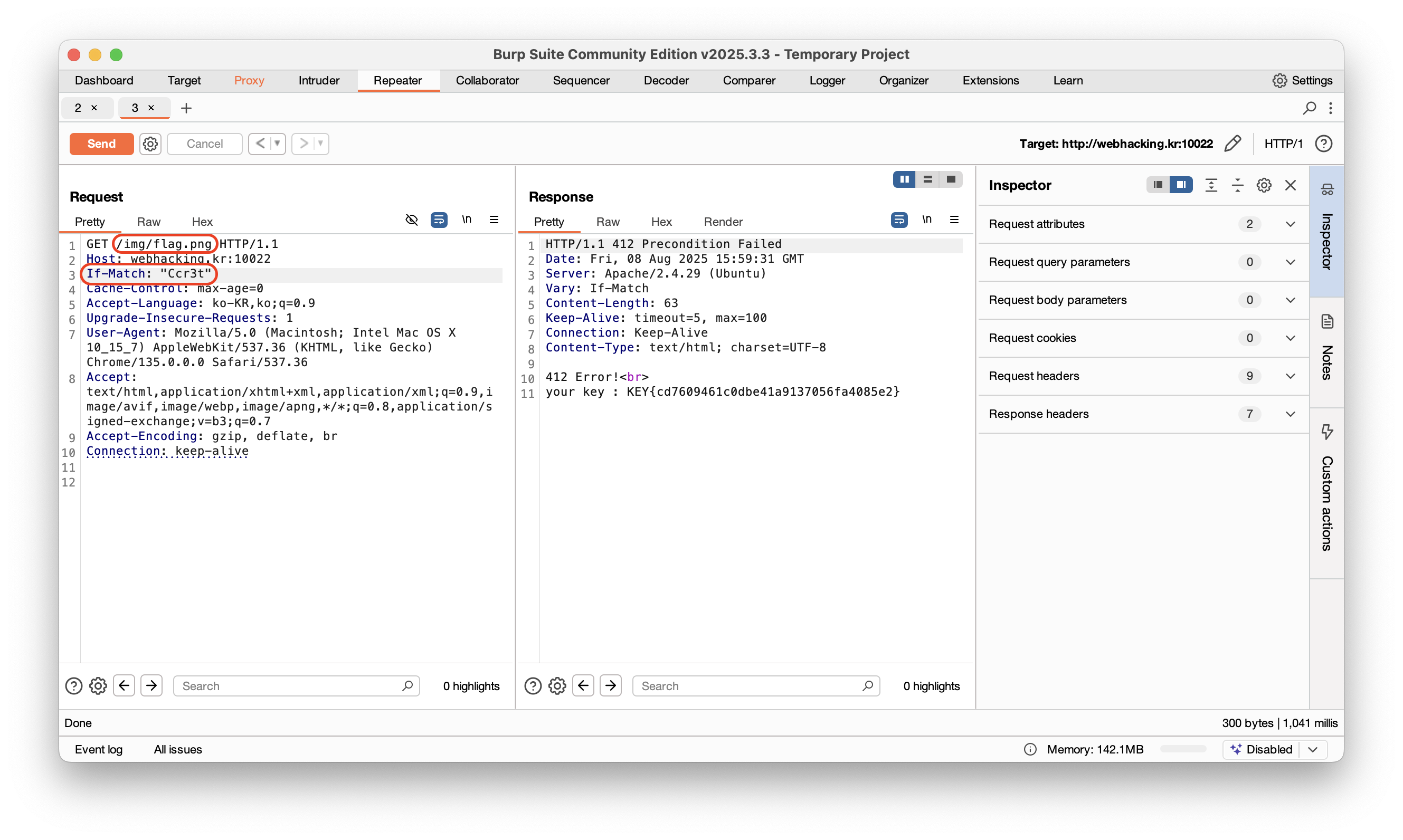 If-Match = "3ec2-61b15b065f900" 이렇게 flag.png의 Etag를 넣어 보냈다면 200이 돌아오지만?