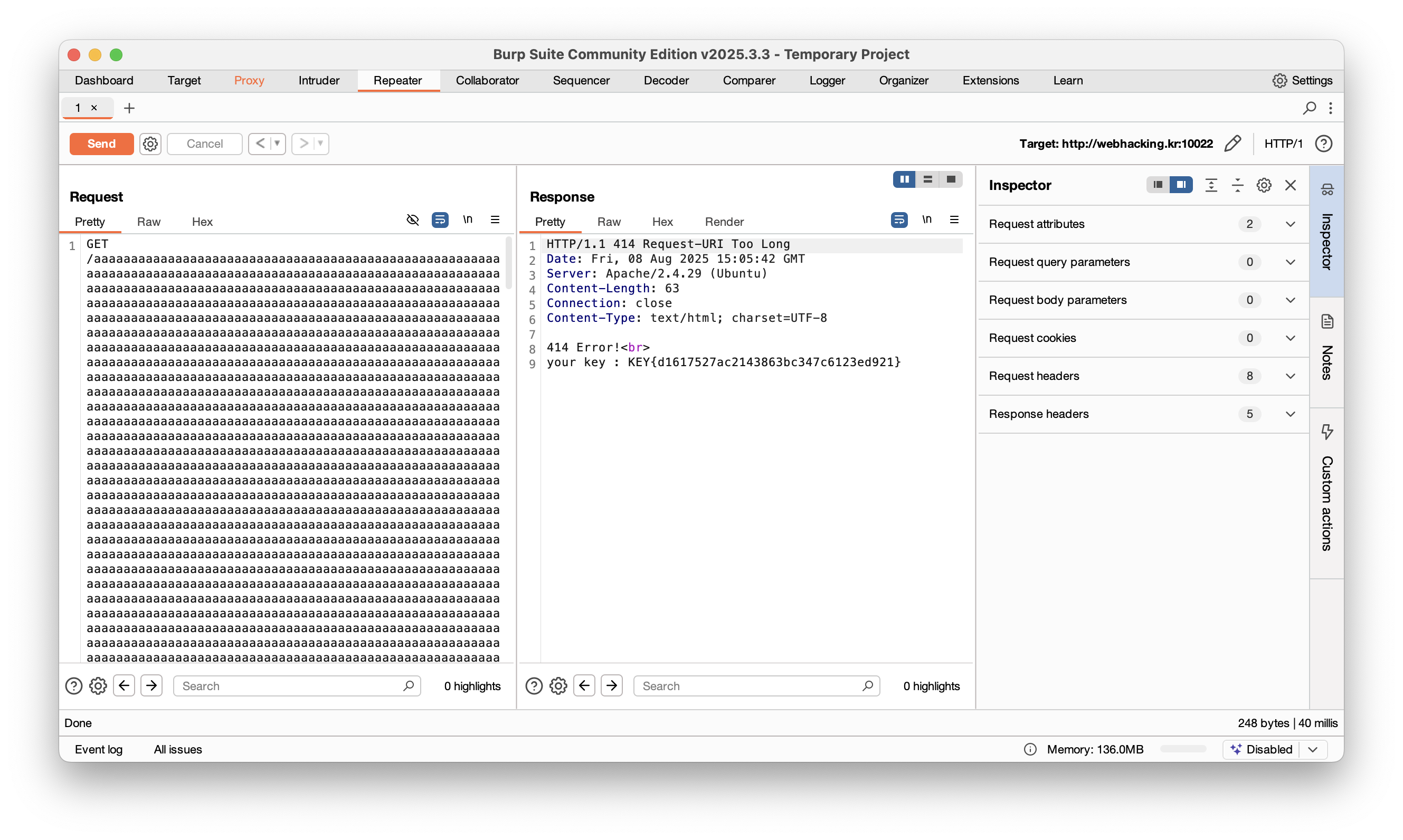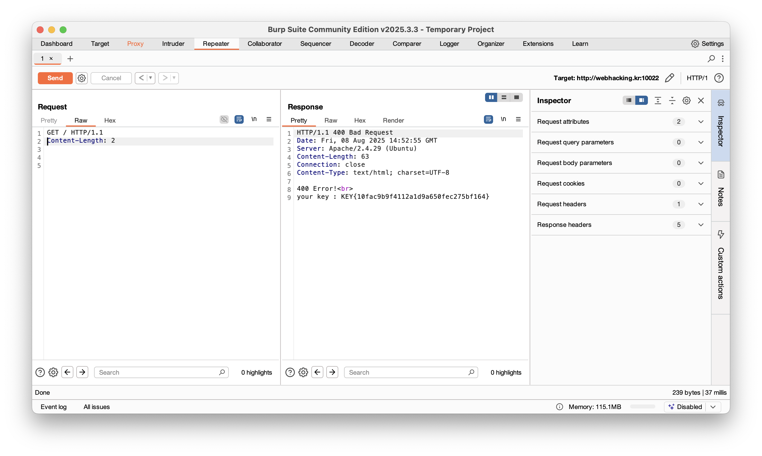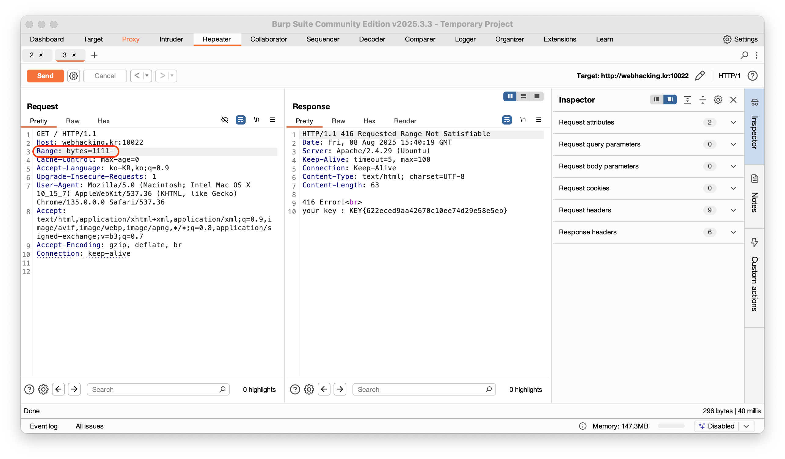 400 : KEY{10fac9b9f4112a1d9a650fec275bf164}