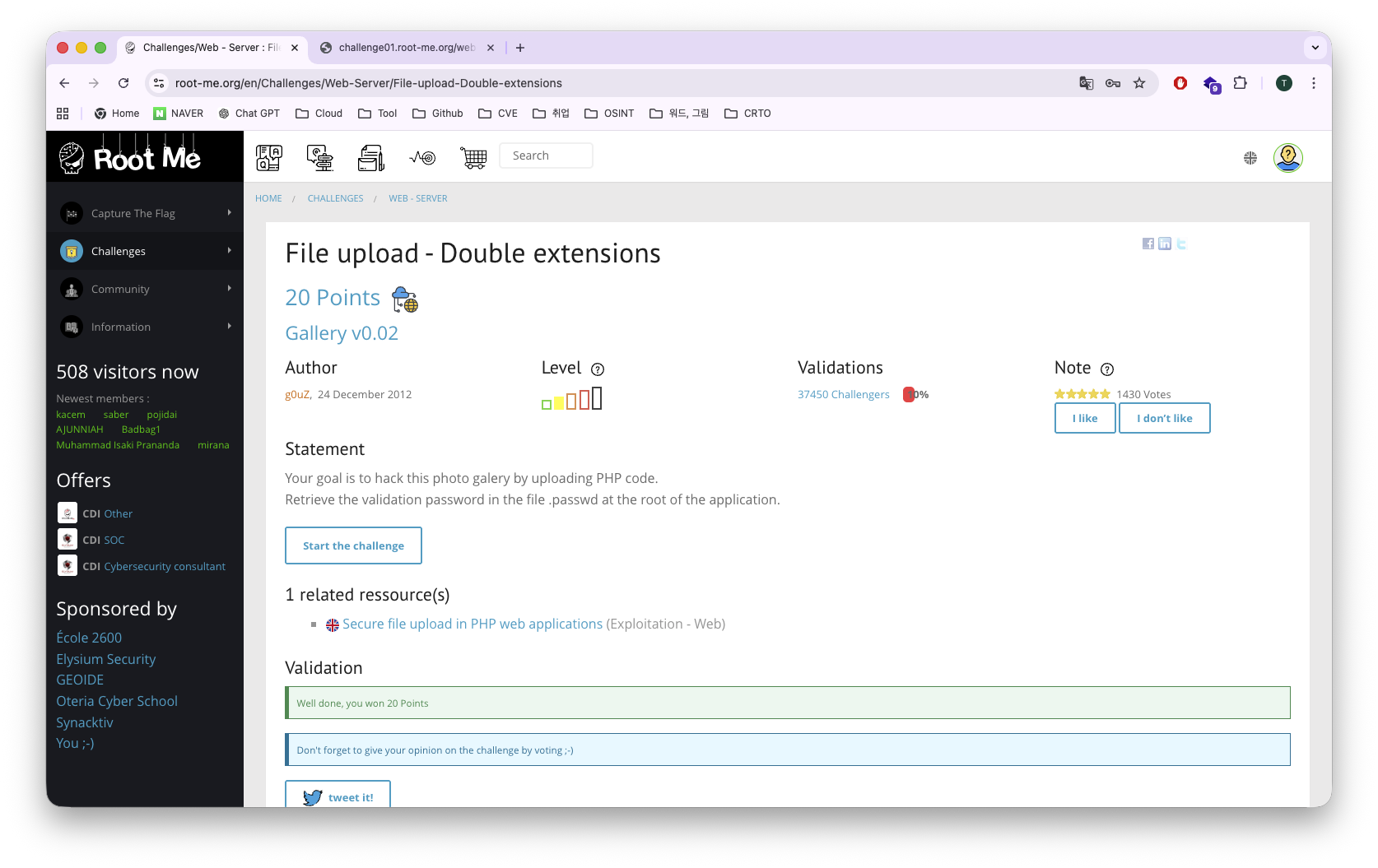 RootMe File upload - Double extensions Write-up