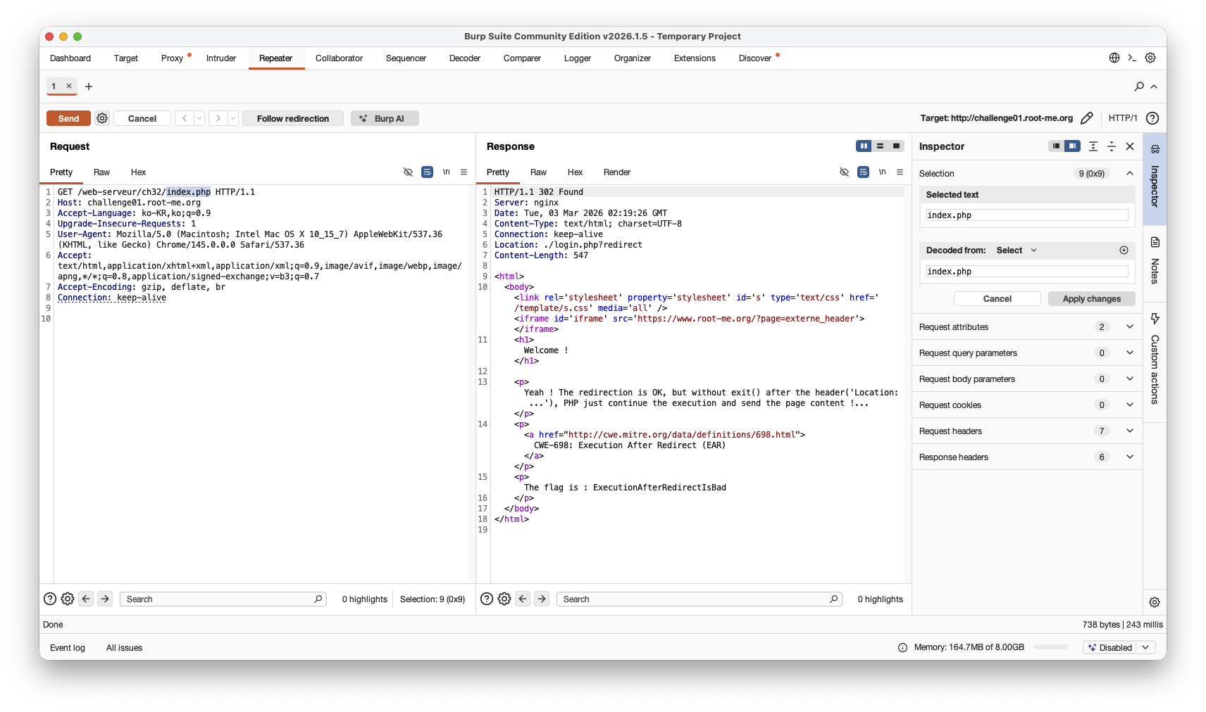 RootMe HTTP - Improper redirect Write-up