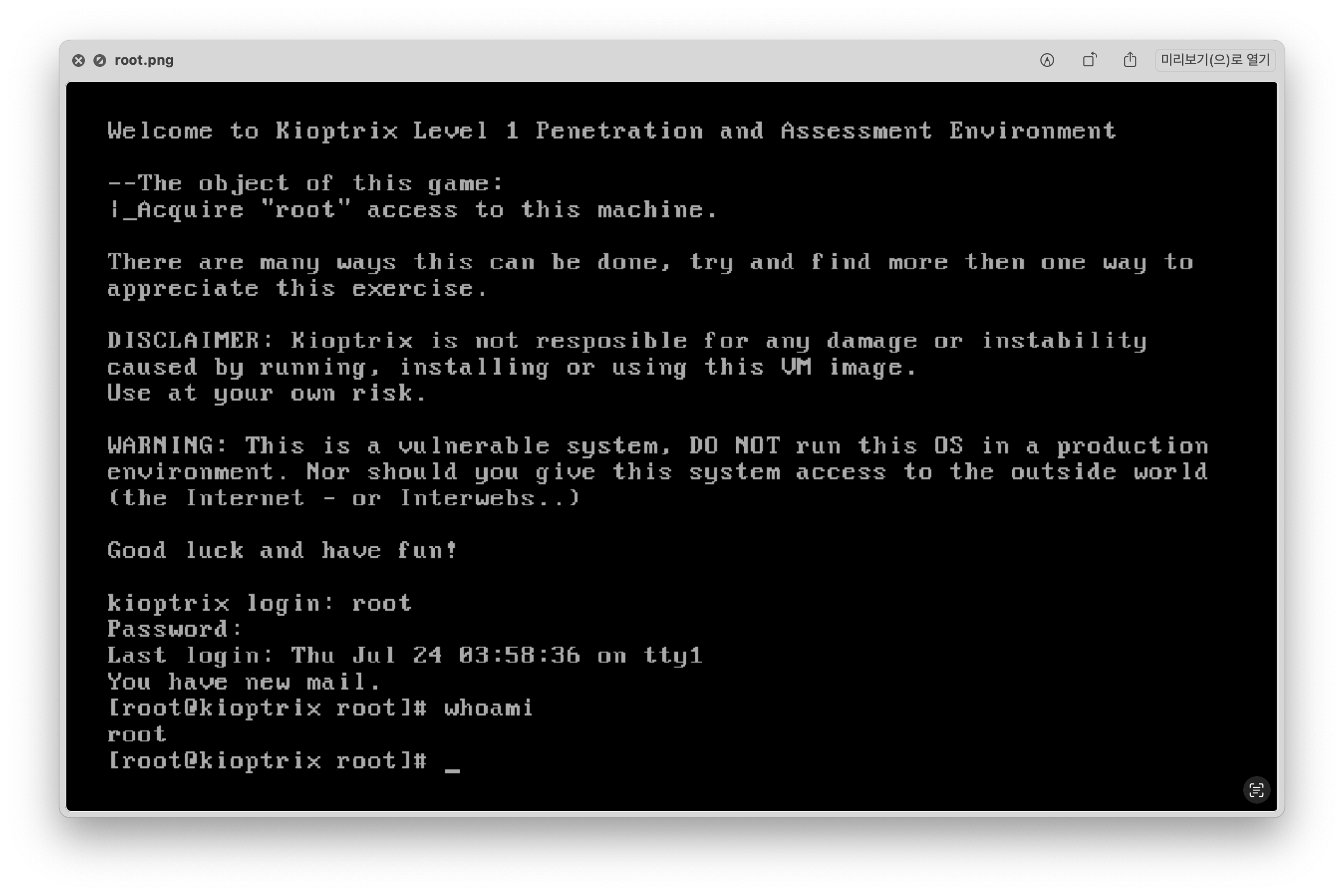 이후 가상머신으로 돌아와 root / pw 를 입력하니 접속이 잘 되었다..