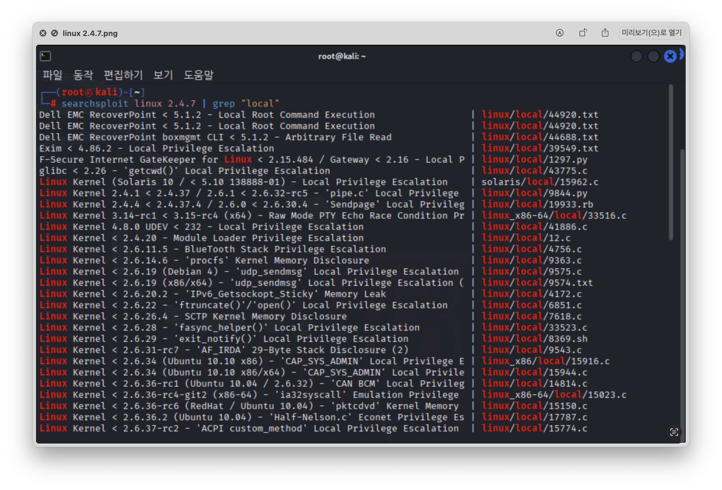 local에서 사용하는 취약점은 대부분 권한상승 취약점이니 이거를 가지고 해보려고 봤다.