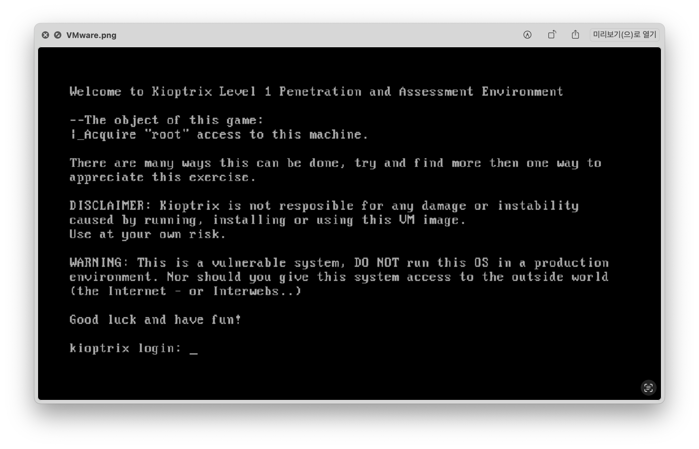 가상머신을 가동시키면 뭐라뭐라 나오는데