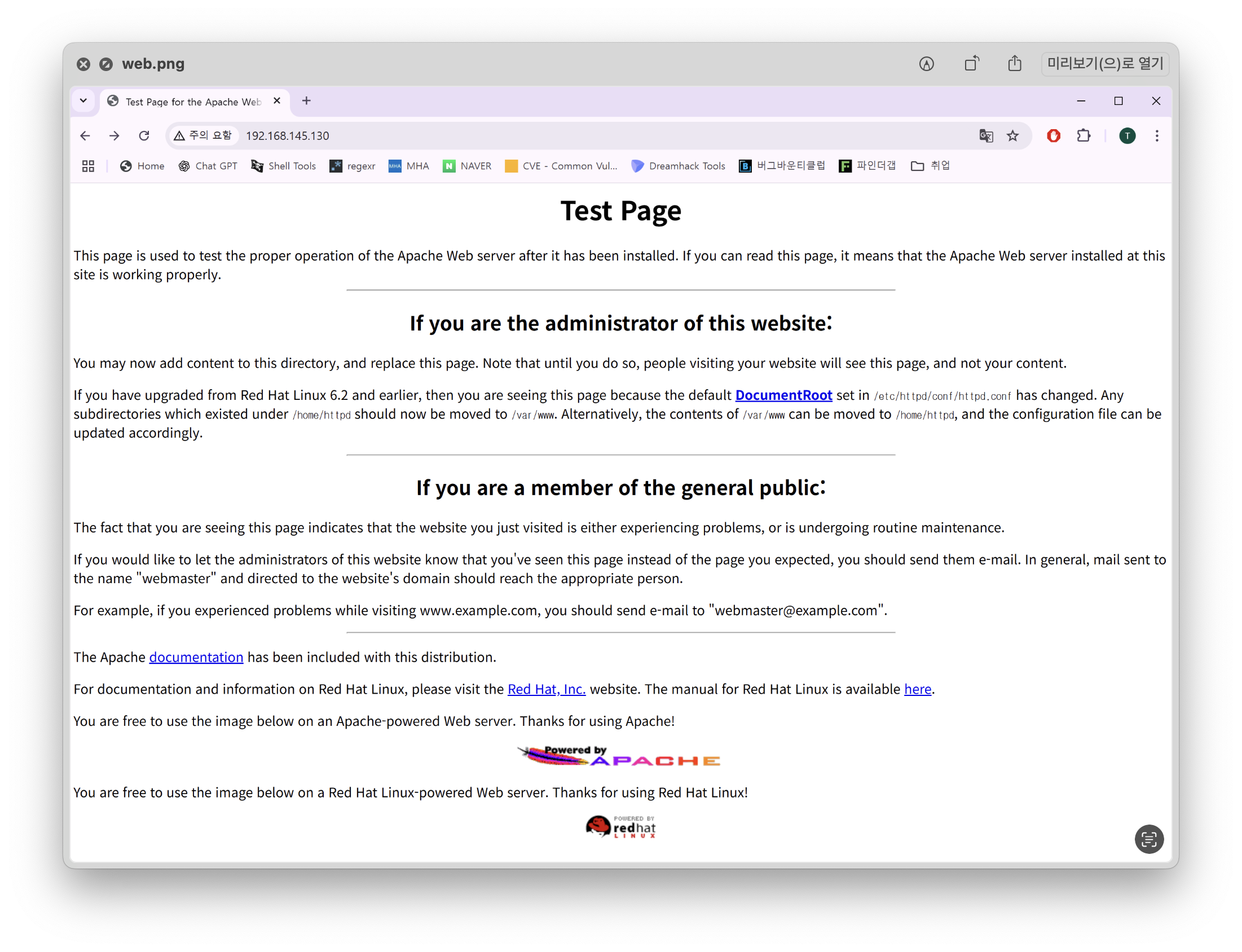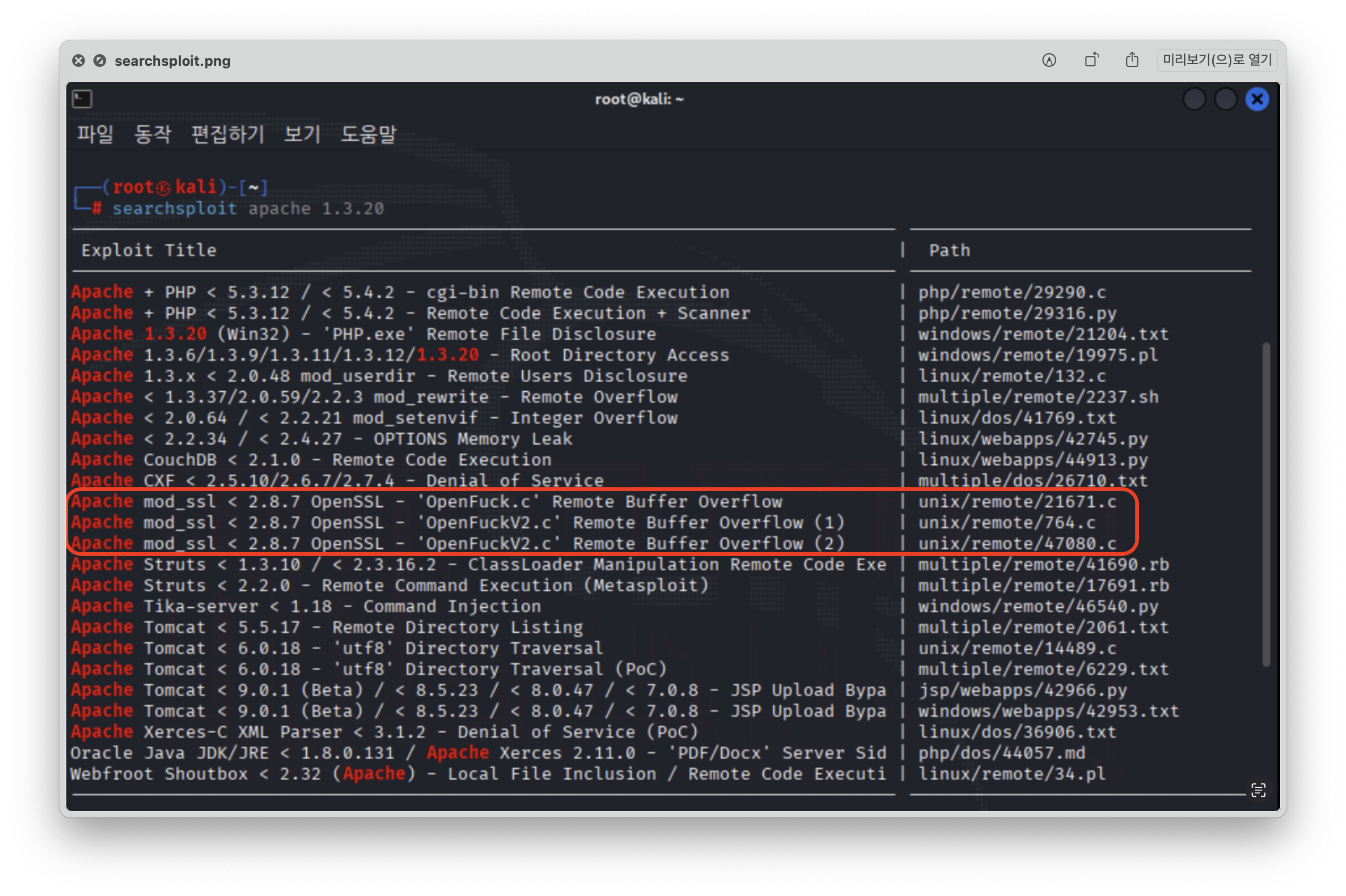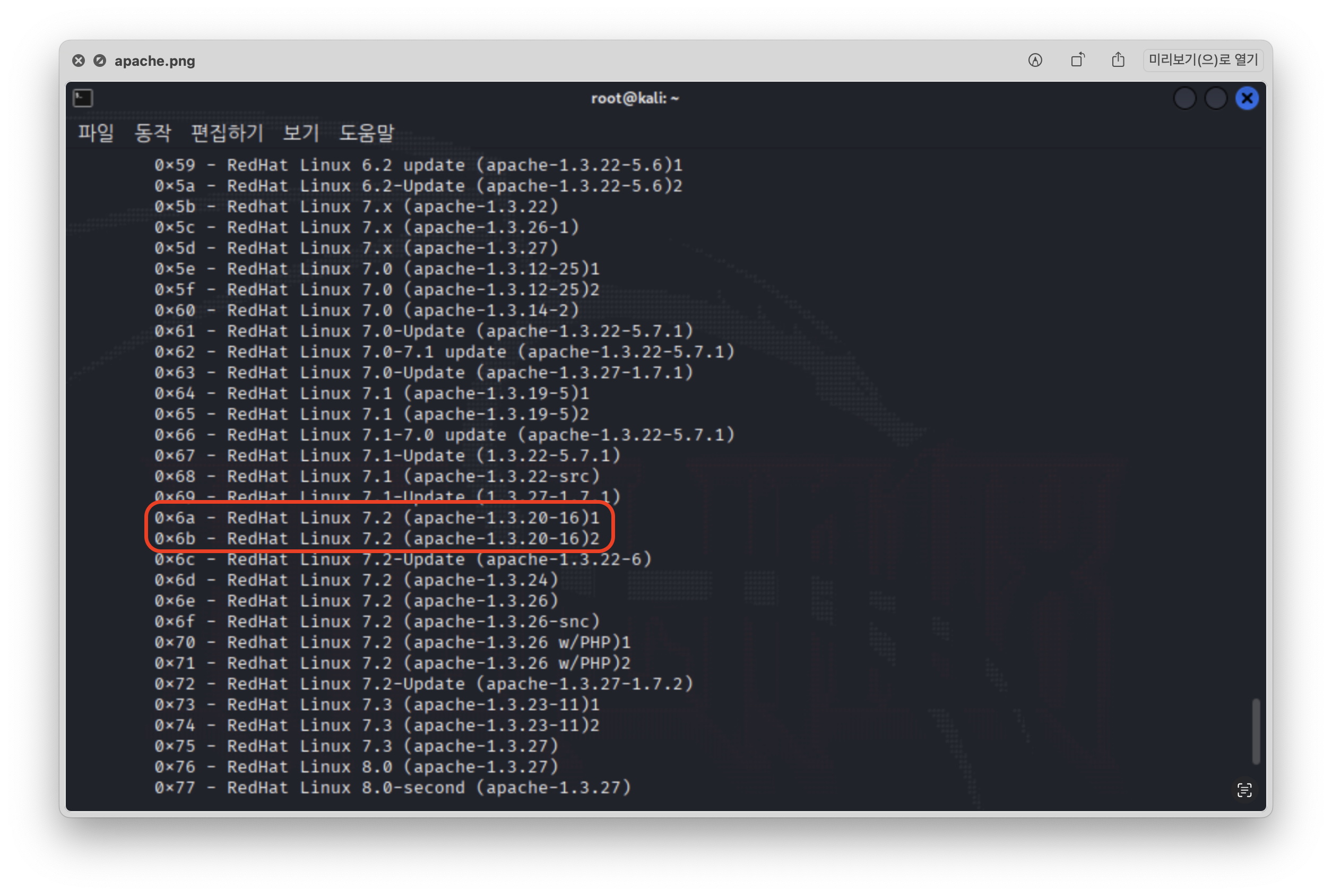 아까전에 봤던 apache 1.3.20 버전이 보인다