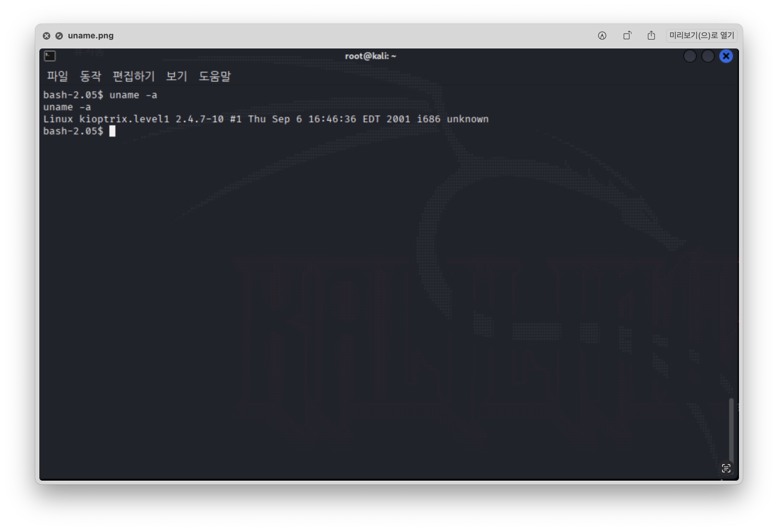 가장 먼저 해야 할 부분은 리눅스 커널 정보 즉 취약한 버전을 이용하기 위해서 커널 버전이 필요했다.