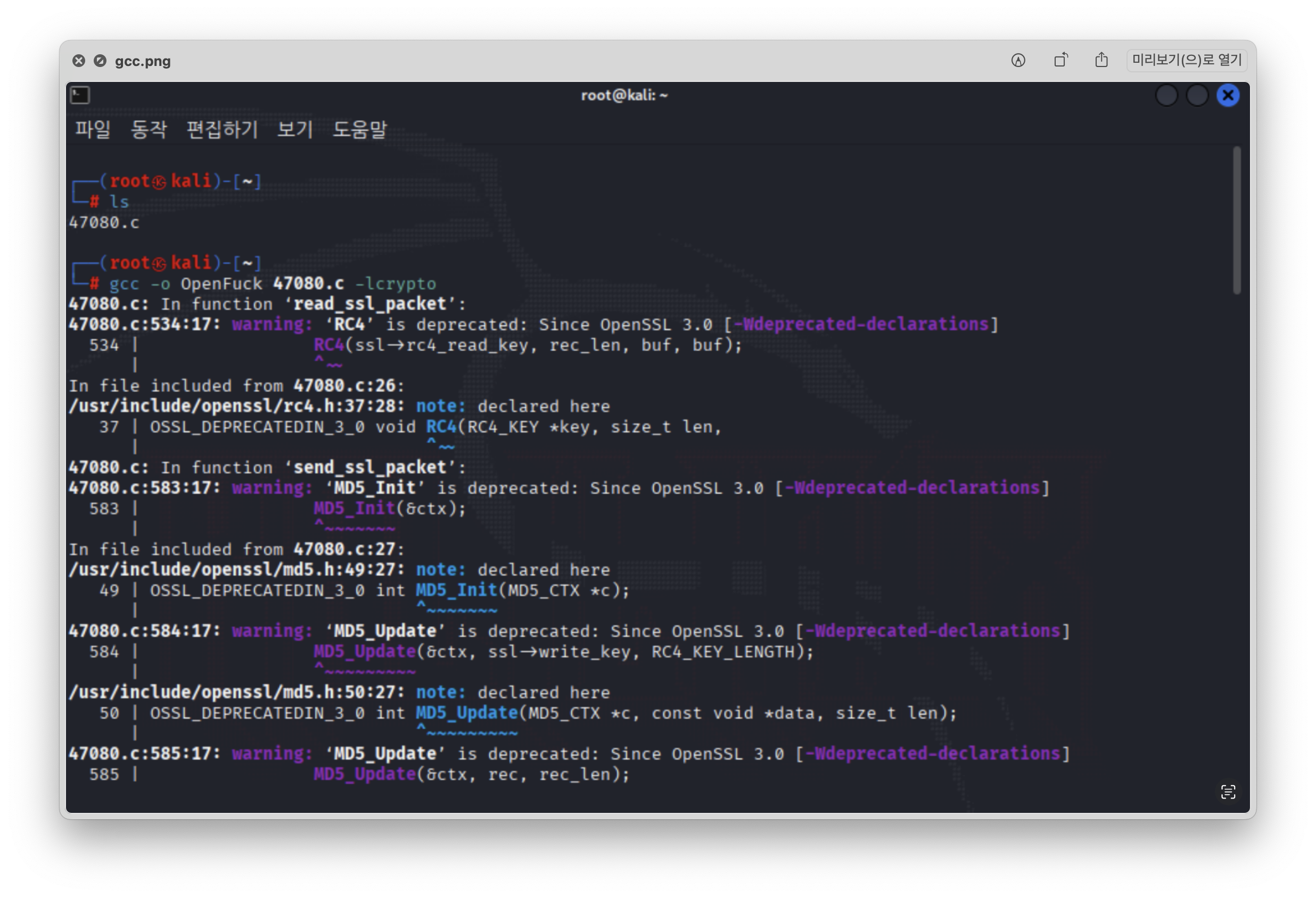 다운 받은 파일을 바로 gcc로 컴파일 해주고