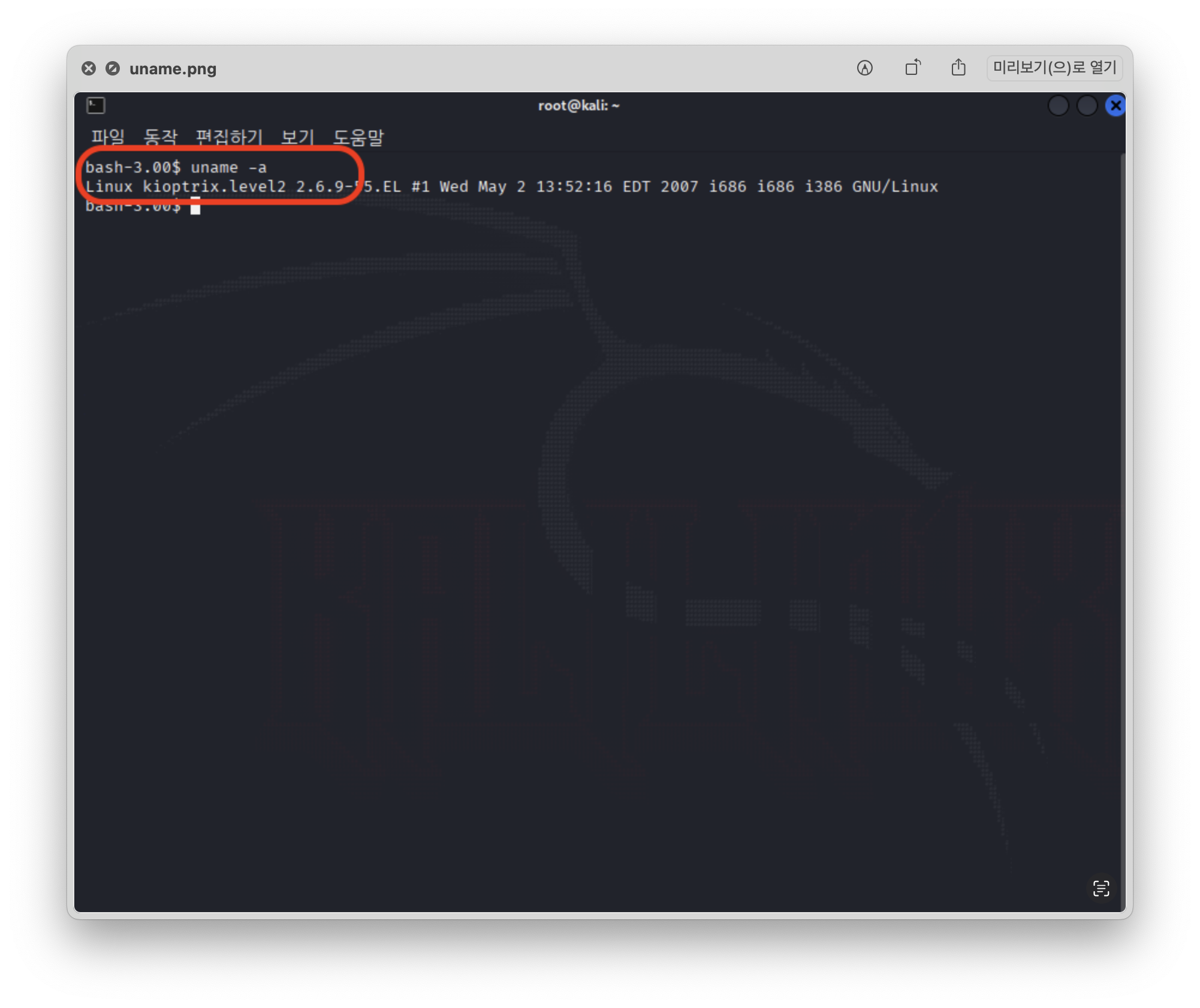 uname -a 명령어를 통해 시스템의 커널 및 운영체제 정보를 파악하였고