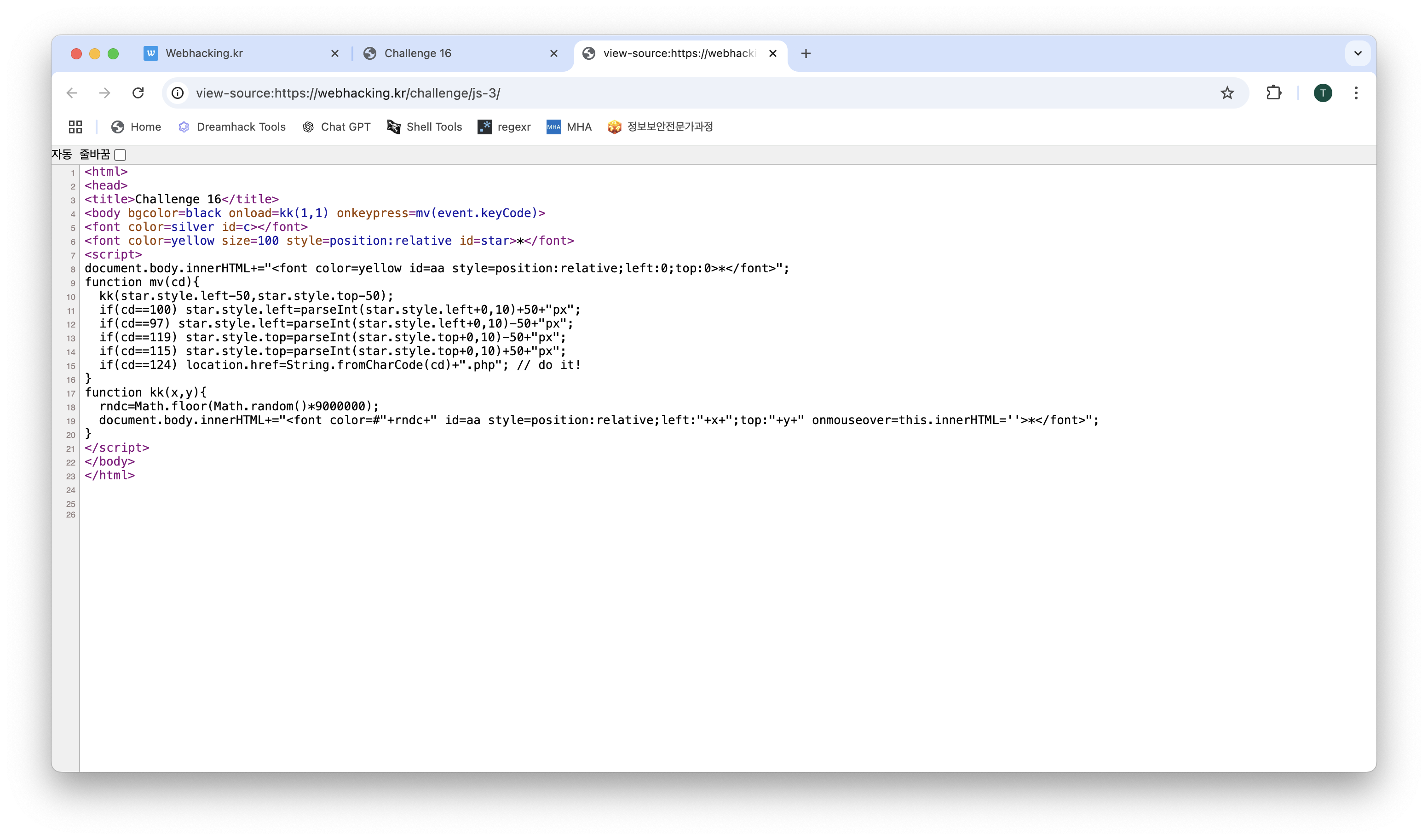 바로 onkeypress=mv(event.keyCode) 이부분에서 꽂혔다.