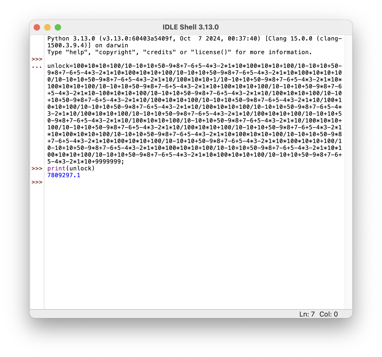 unlock=100*10*10+100/10-10+10+50-9*8+7-6+5-4*3-2*1*10*100*10*10+100/10-10+10+50-9*8+7-6+5-4*3-2*1*10*100*10*10+100/10-10+10+50-9*8+7-6+5-4*3-2*1*10*100*10*10+100/10-10+10+50-9*8+7-6+5-4*3-2*1*10/100*10*10+1/10-10+10+50-9*8+7-6+5-4*3-2*1*10*100*10*10+100/10-10+10+50-9*8+7-6+5-4*3-2*1*10+100*10*10+100/10-10+10+50-9*8+7-6+5-4*3-2*1*10-100*10*10+100/10-10+10+50-9*8+7-6+5-4*3-2*1*10/100*10*10+100/10-10+10+50-9*8+7-6+5-4*3-2*1*10/100*10*10+100/10-10+10+50-9*8+7-6+5-4*3-2*1*10/100*10*10+100/10-10+10+50-9*8+7-6+5-4*3-2*1*10/100*10*10+100/10-10+10+50-9*8+7-6+5-4*3-2*1*10/100*10*10+100/10-10+10+50-9*8+7-6+5-4*3-2*1*10/100*10*10+100/10-10+10+50-9*8+7-6+5-4*3-2*1*10/100*10*10+100/10-10+10+50-9*8+7-6+5-4*3-2*1*10/100*10*10+100/10-10+10+50-9*8+7-6+5-4*3-2*1*10/100*10*10+100/10-10+10+50-9*8+7-6+5-4*3-2*1*10*100*10*10+100/10-10+10+50-9*8+7-6+5-4*3-2*1*10*100*10*10+100/10-10+10+50-9*8+7-6+5-4*3-2*1*10*100*10*10+100/10-10+10+50-9*8+7-6+5-4*3-2*1*10*100*10*10+100/10-10+10+50-9*8+7-6+5-4*3-2*1*10*100*10*10+100/10-10+10+50-9*8+7-6+5-4*3-2*1*10*100*10*10+100/10-10+10+50-9*8+7-6+5-4*3-2*1*10*100*10*10+100/10-10+10+50-9*8+7-6+5-4*3-2*1*10+9999999;
