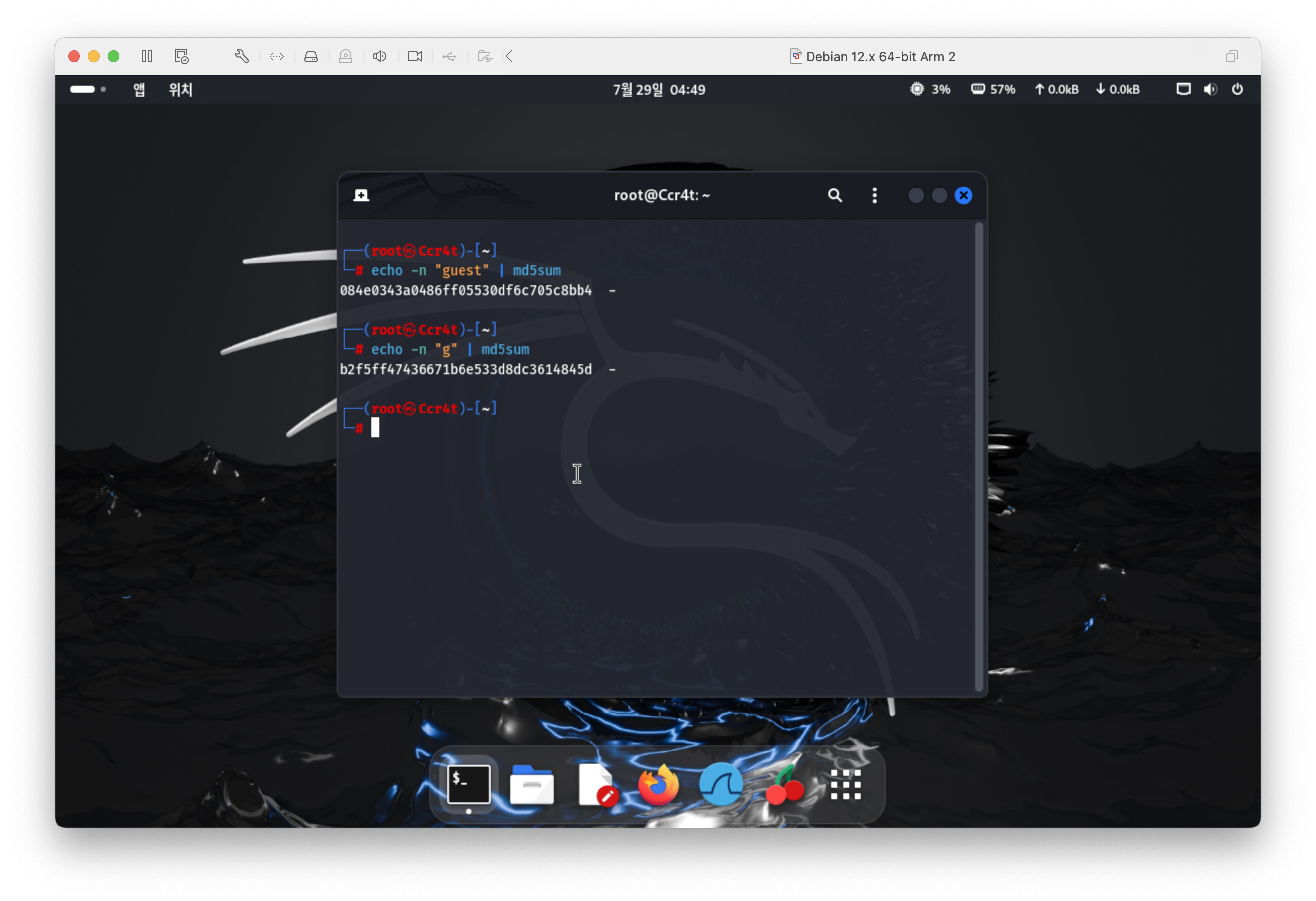 echo -n "guest" | md5sum