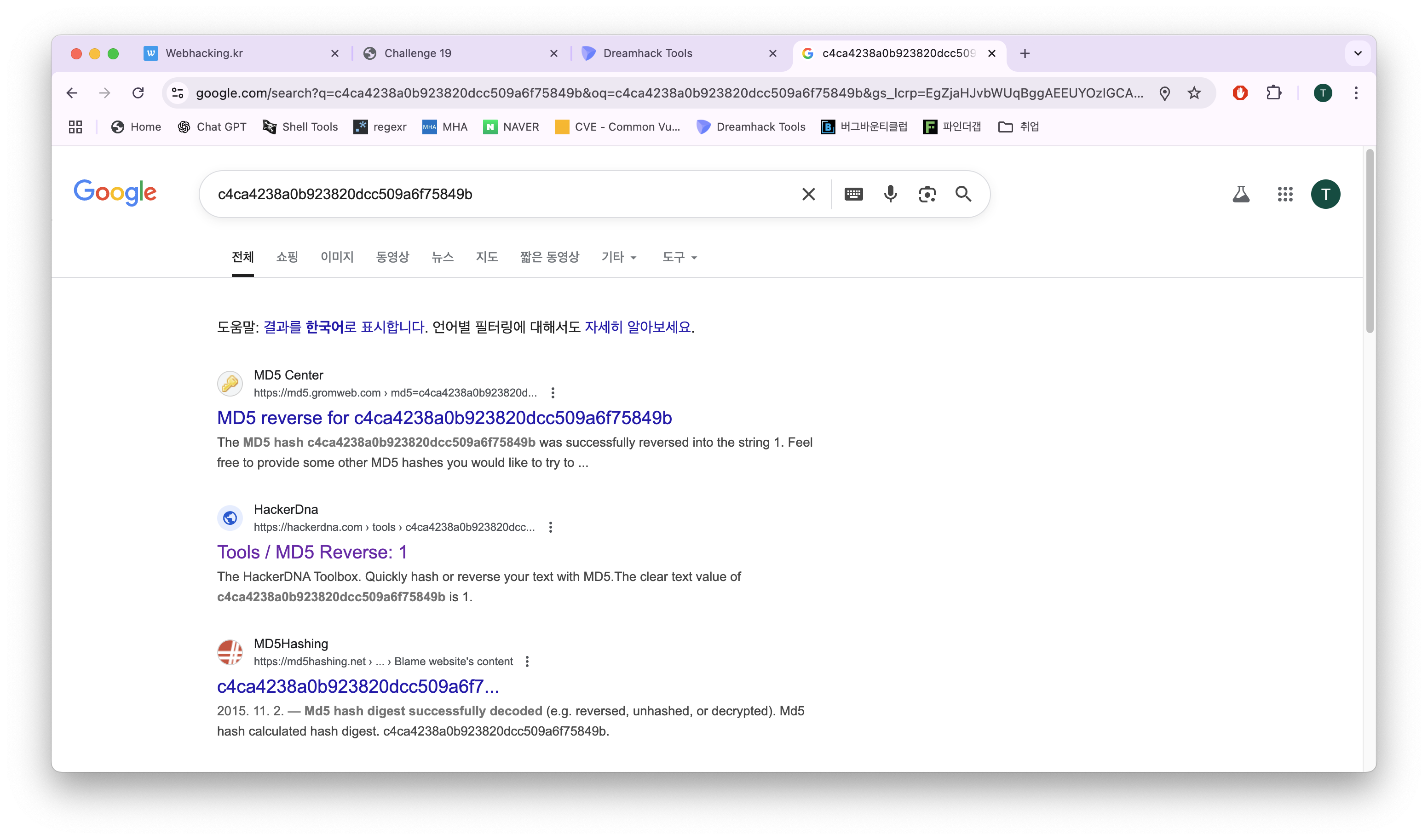 봤는데 1을 MD5로 해싱하면 c4ca4238a0b923820dcc509a6f75849b 이 값이 나오는게 아니냐 와이 씨