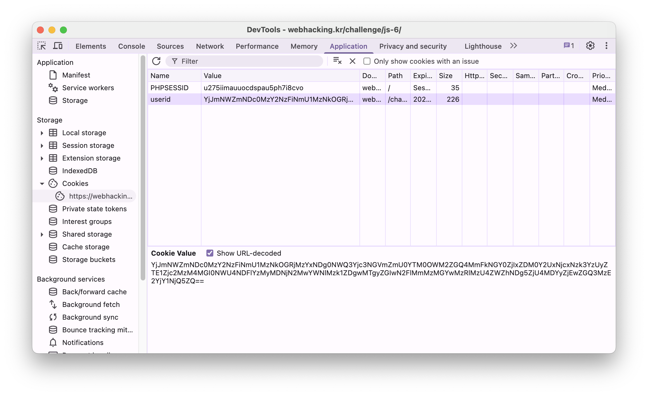 바로위 PHPSESSID 와 달리 엄청 무자비한 값들이 들어있어 이게 뭐지 생각하다가 맨뒤에 ==를 보고 깨달았다.
