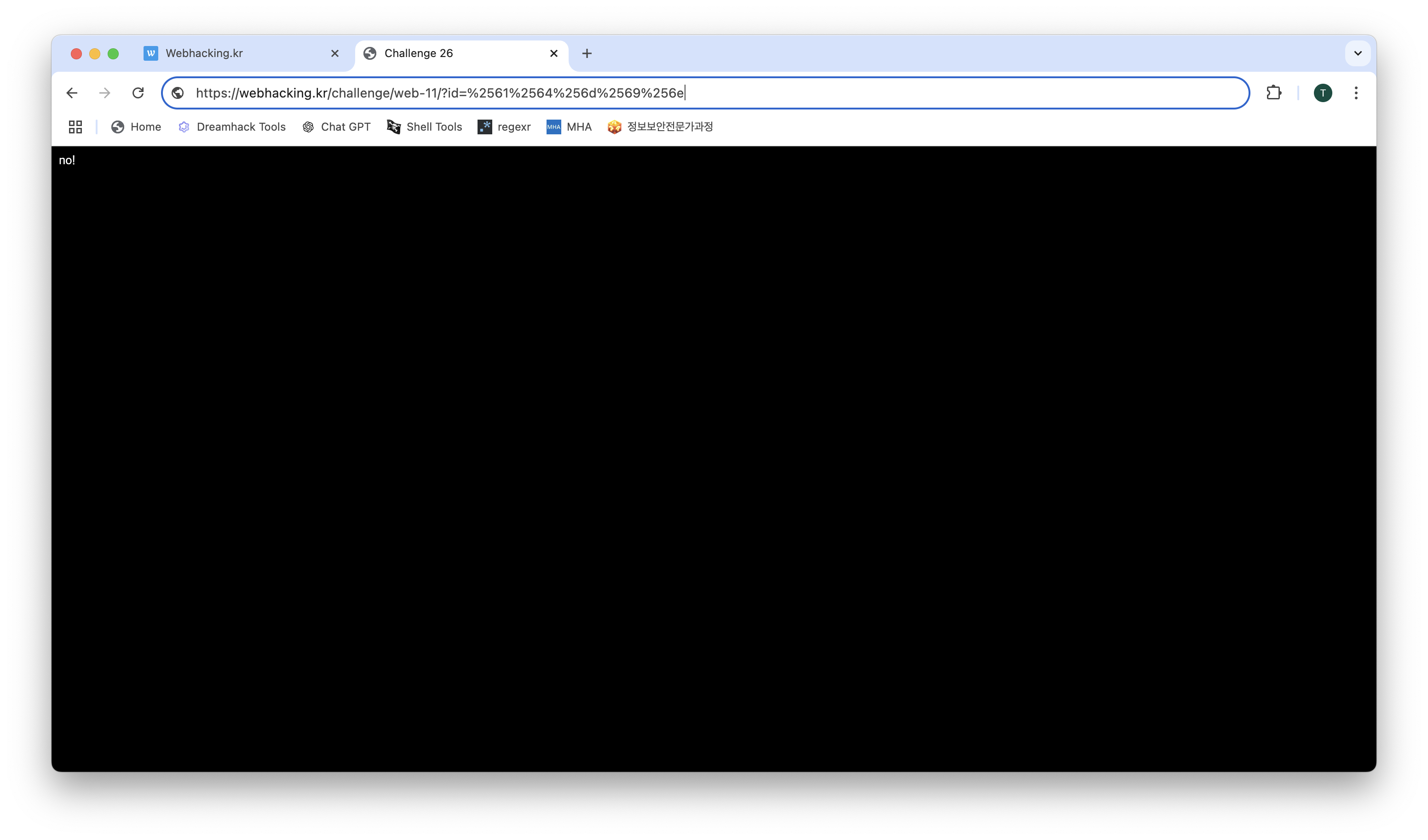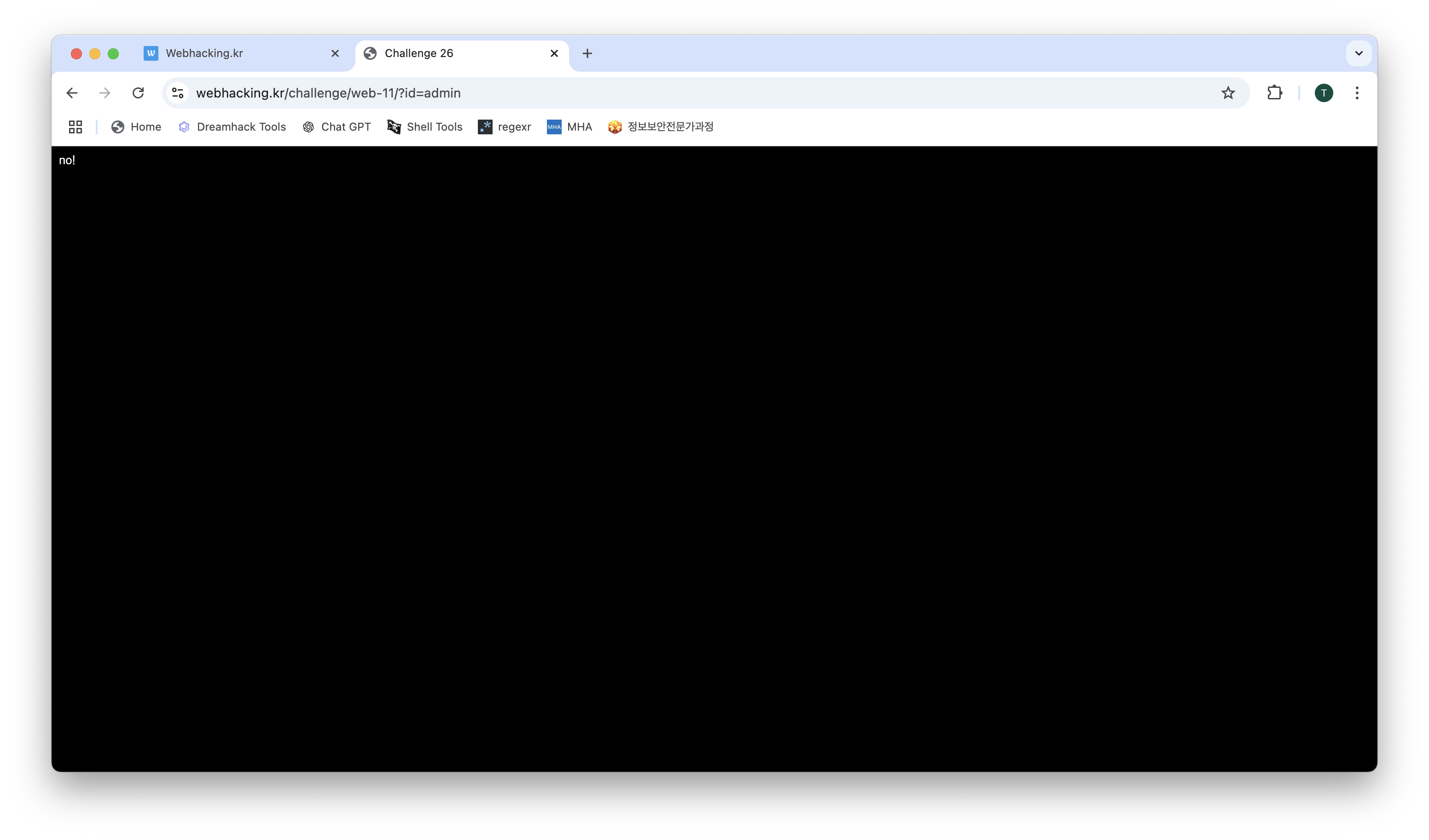 즉, admin이라는 문자열이 들어가 있으면 "no!" 를 말할게~ 이 뜻이다.