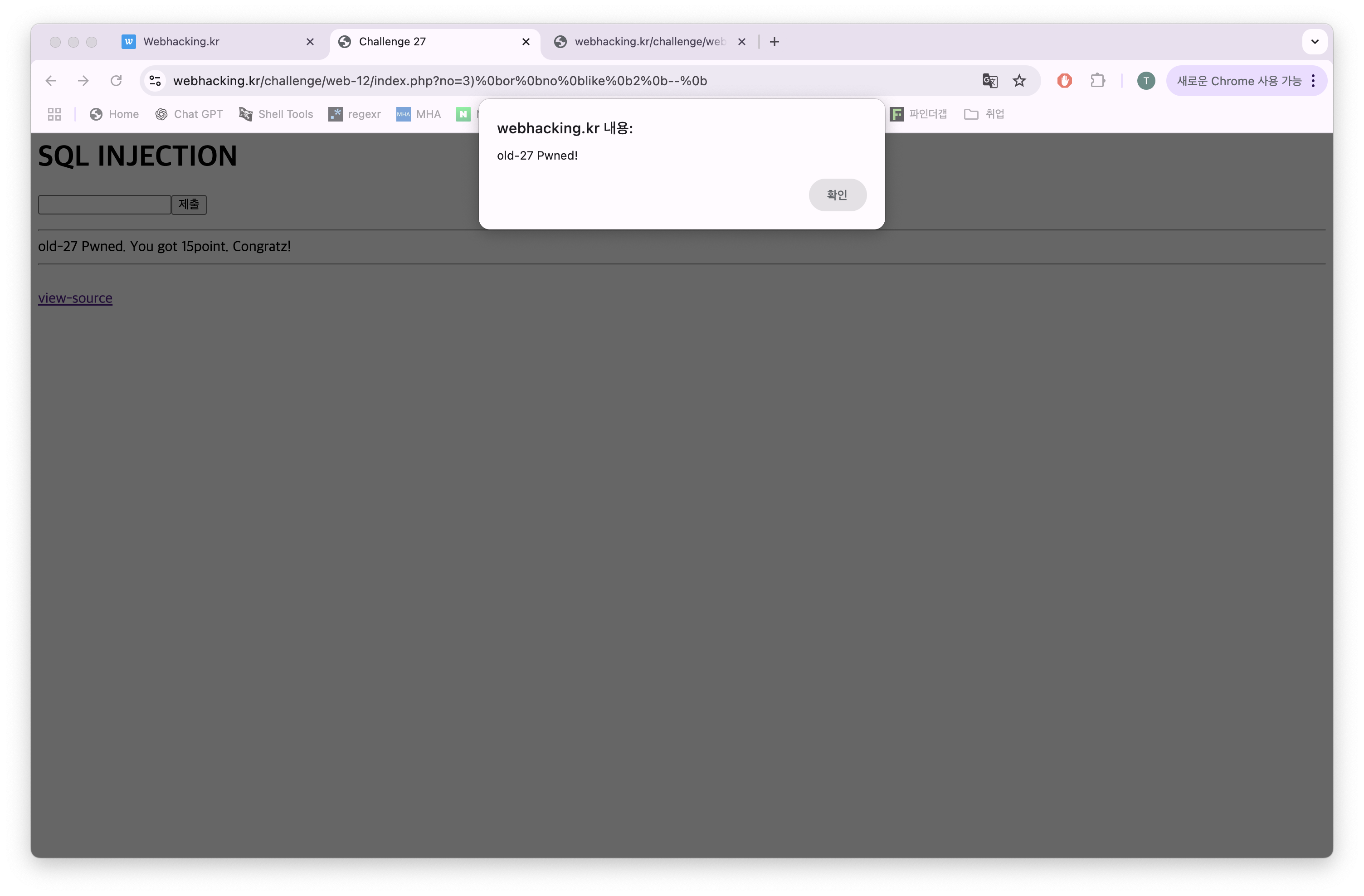 이런형식이면 풀릴건데 필터링이 걸려있는게 있으니 이것들을 우회하면